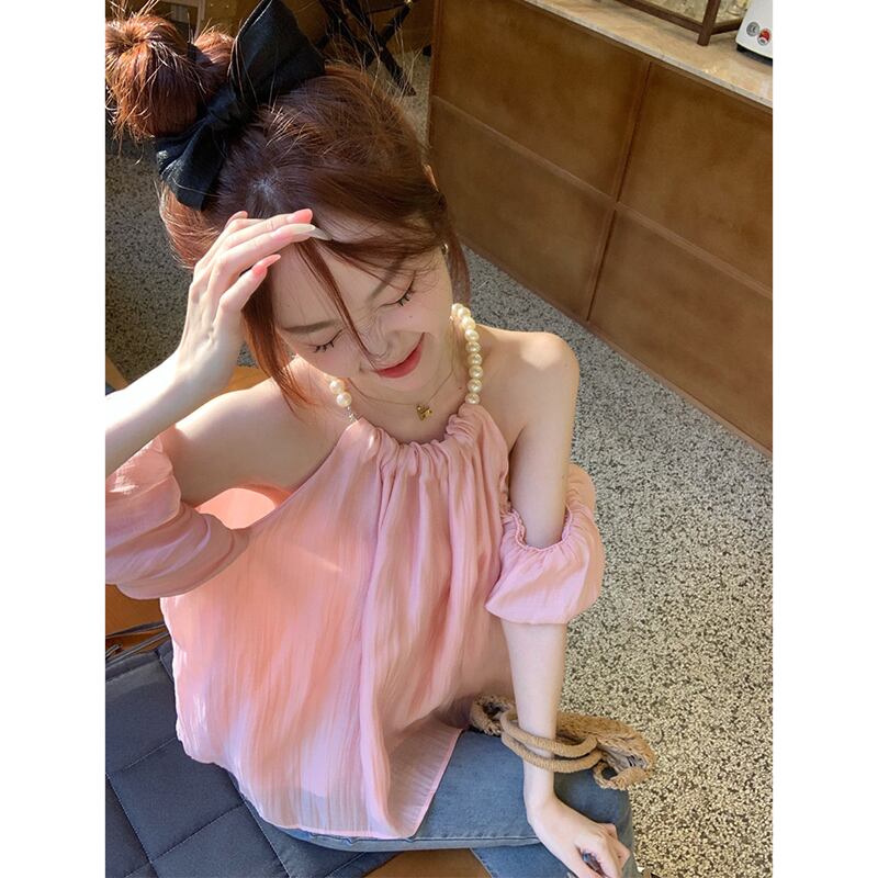 純粋な欲望風吊りネックパフスリーブシャツ女性の夏の新しいフレンチデザインセンスストラップレスオールマッチ緩い美しいシャツ サマー 夏物 missk67908414852