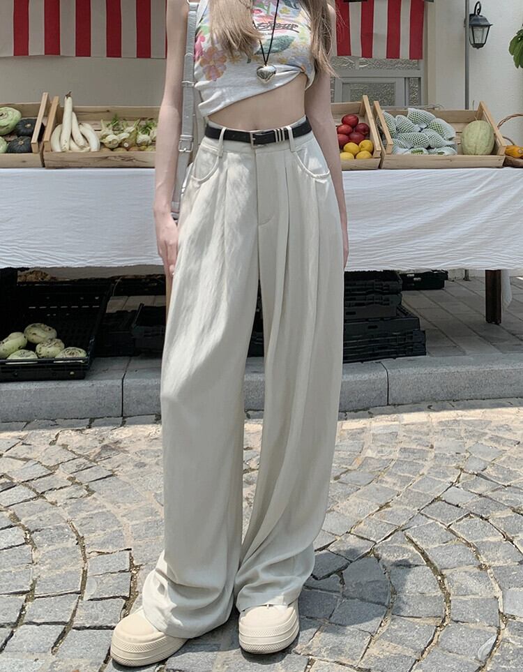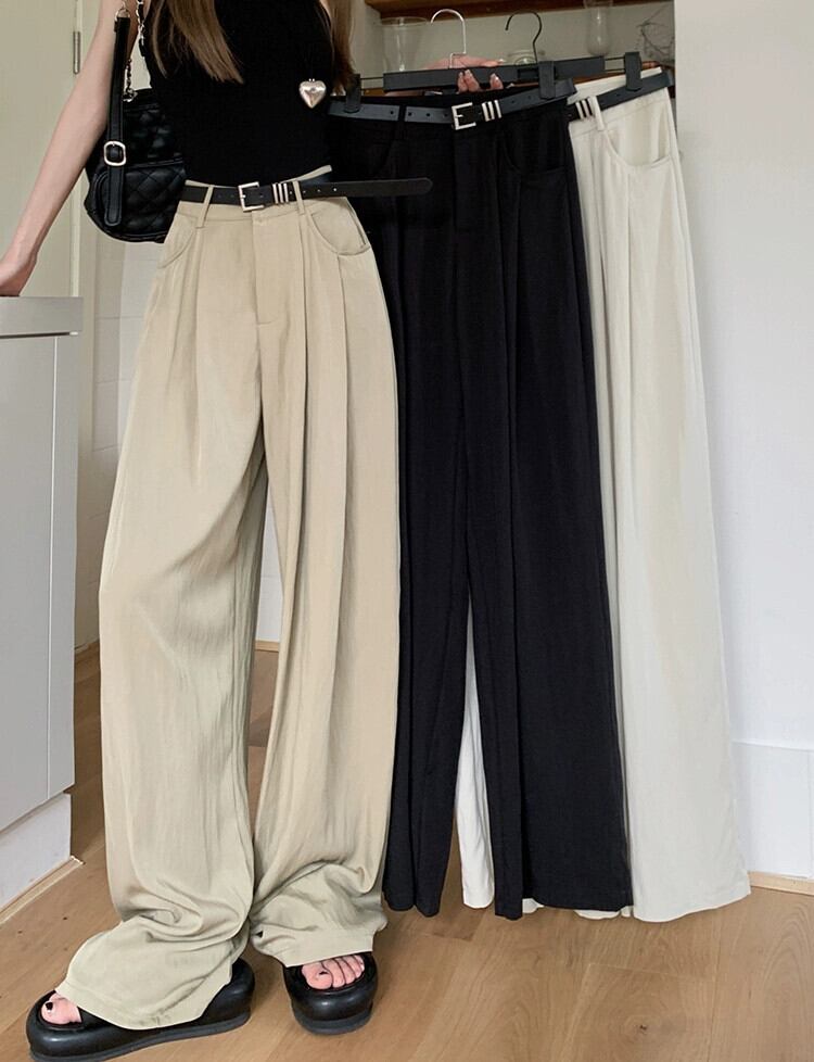 通気性のあるカジュアルスーツパンツレディース2023年夏新作軽くて薄いハイウエストスリムワイドレッグパンツシック ハイウェスト サマー 夏物 ワイドパンツ missk83022325356