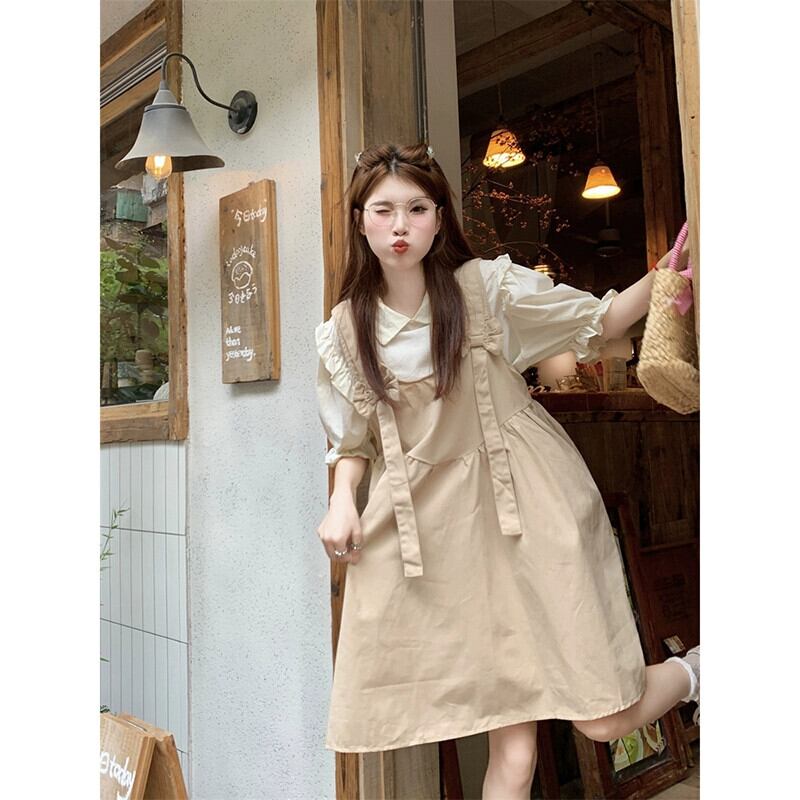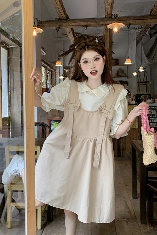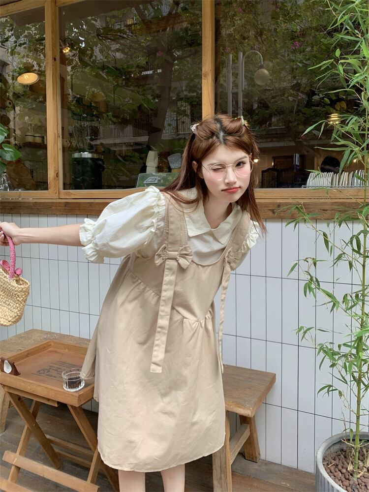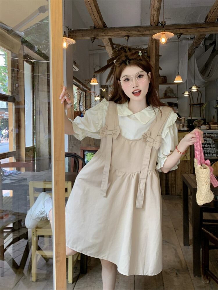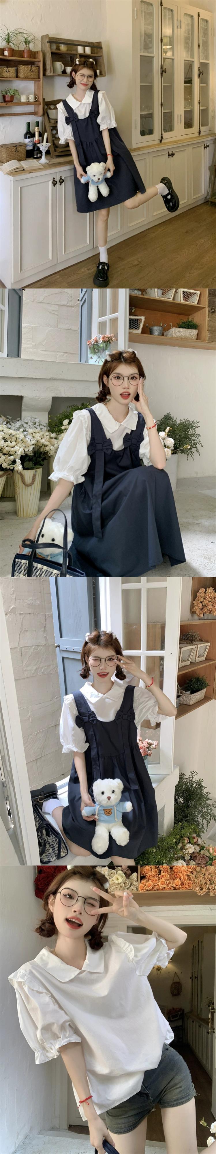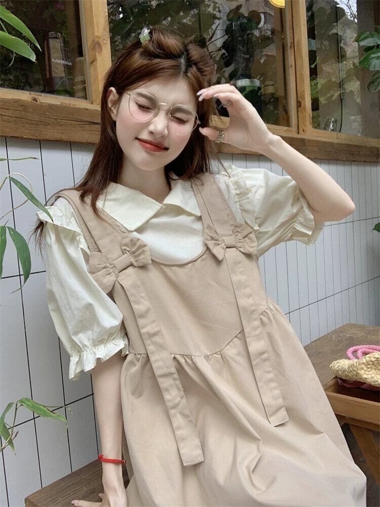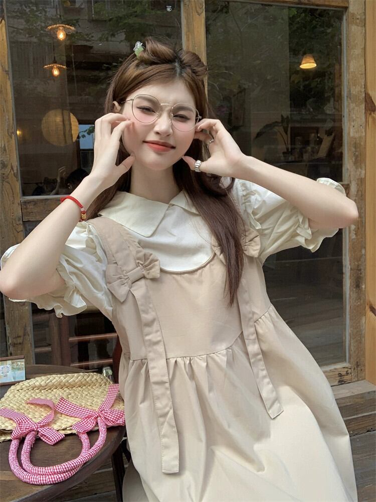 Sweet ese ラペルバブル半袖シャツトップボウノットストラップドレスレディース夏 2 点セット リボン 大人ガーリー スウィート キュート カジュアル サマー 夏物 missk59571561516