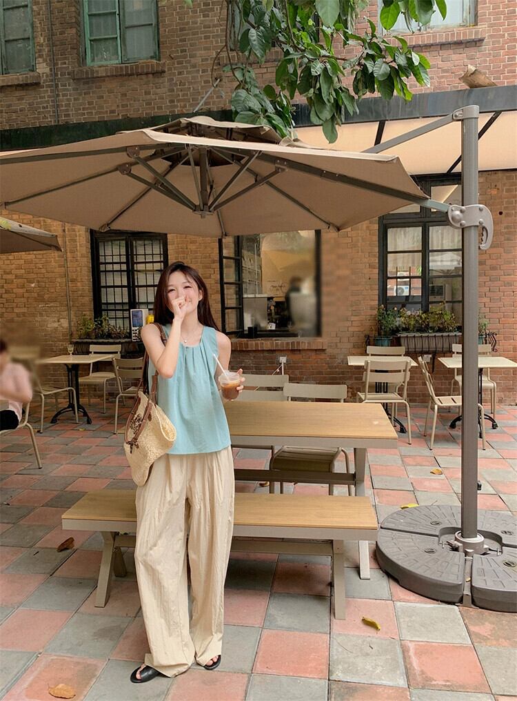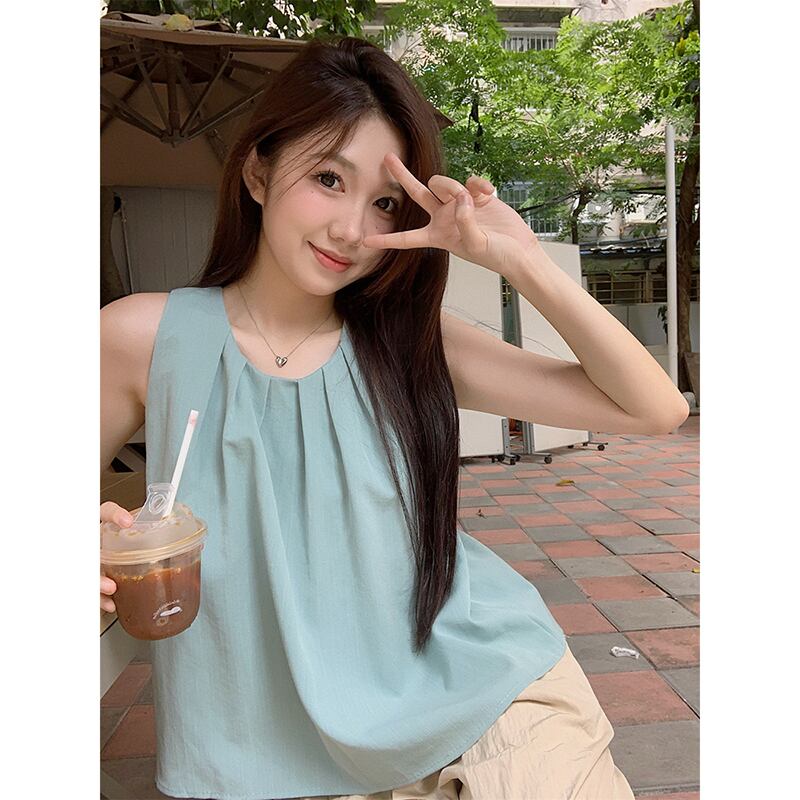 2023 夏の新バージョンのインルースシンプルなオールマッチソリッドカラー年齢軽減ニッチプレスプリーツノースリーブベスト婦人服 サマー 夏物 missk3849689305