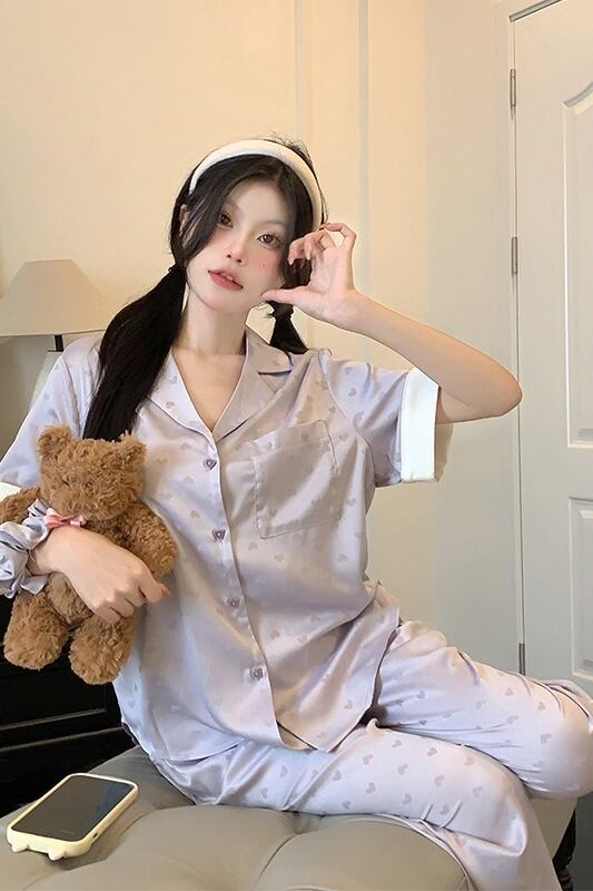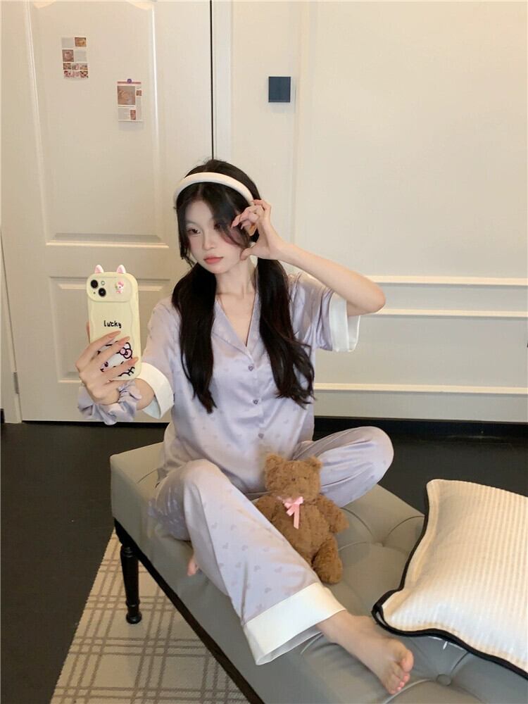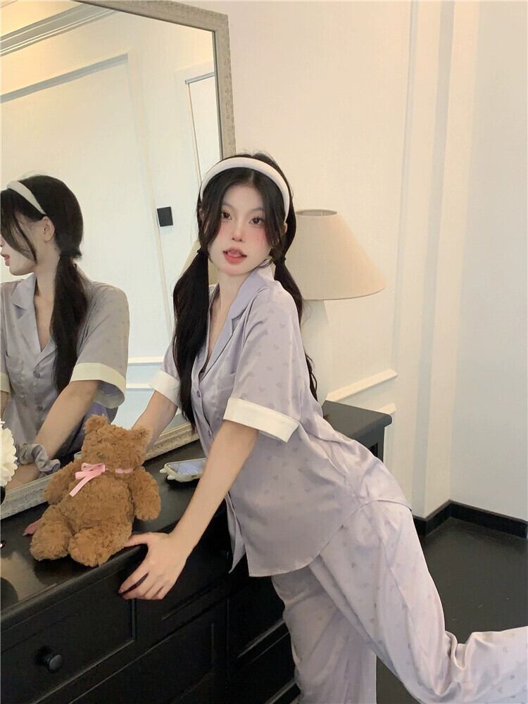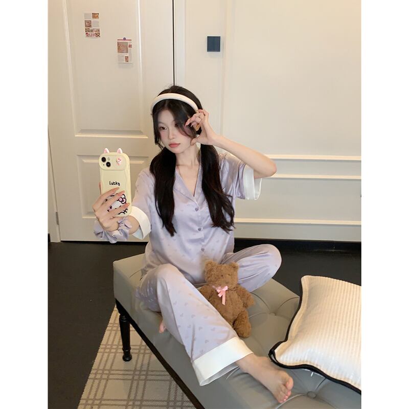 -品質の薄いセクションアイスシルク半袖パジャマとズボンの2点セット女性の夏2023新しいネットレッドカジュアルホームサービス サマー 夏物 missk40578660091