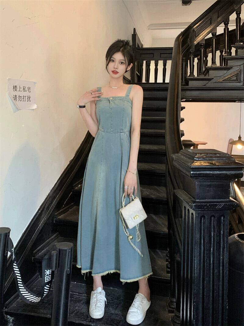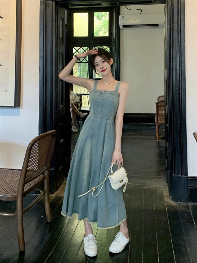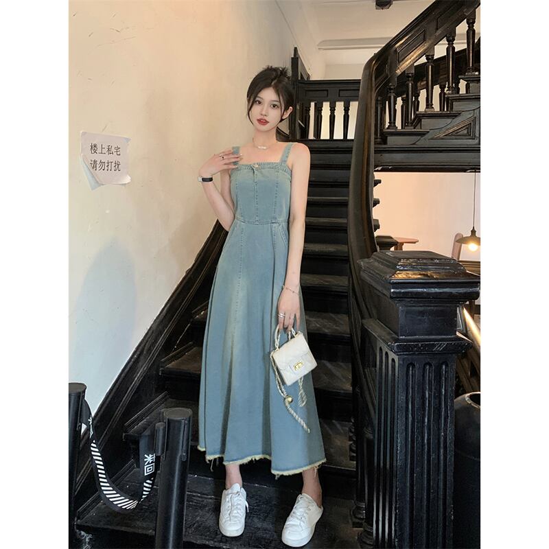 デニムサスペンダードレス夏2023新しい気質女神ファンウエスト痩身ミッドレングスフレンチAラインスカート サマー 夏物 missk76205155766
