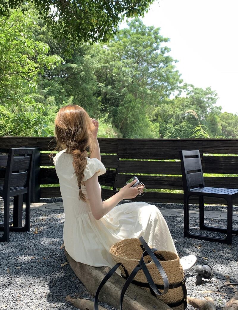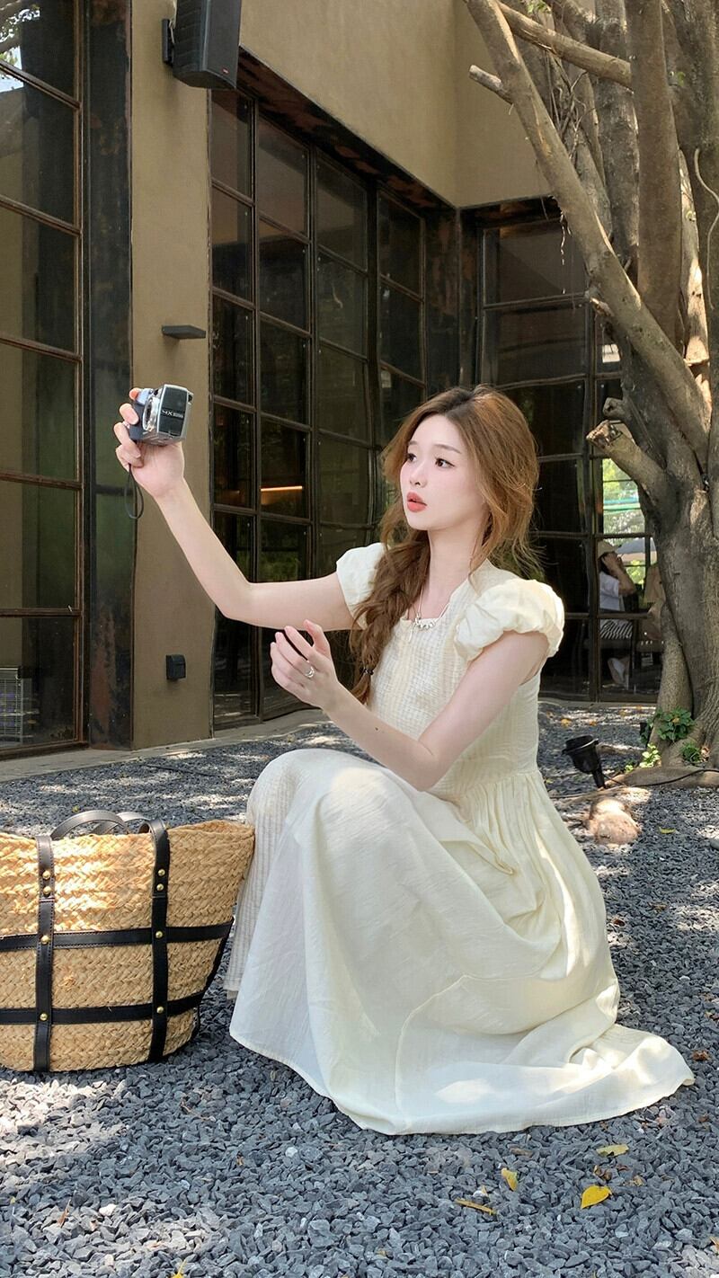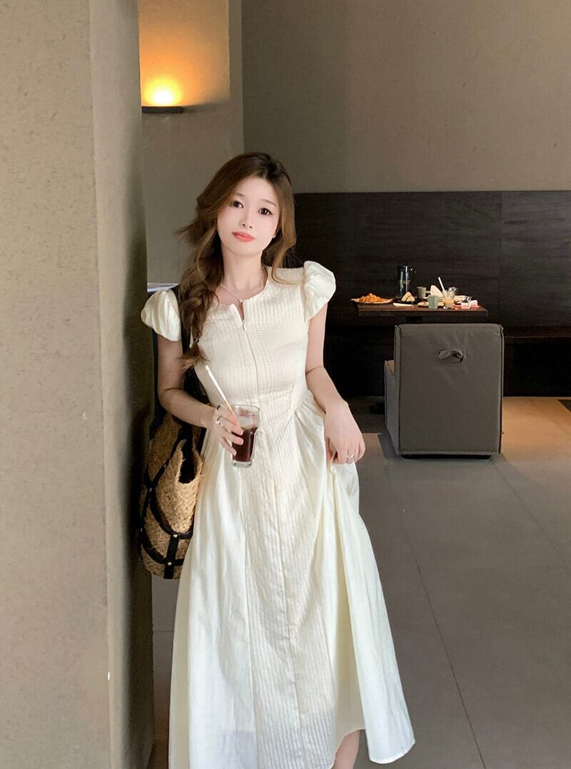 ティーブレイクフレンチドレスの女性の夏の新しいウエスト痩身デザインジッパーパフスリーブミドル丈スカートシック サマー 夏物 missk50274628131