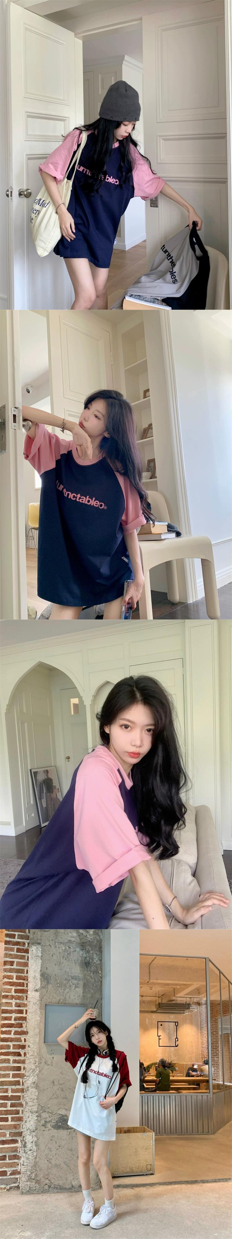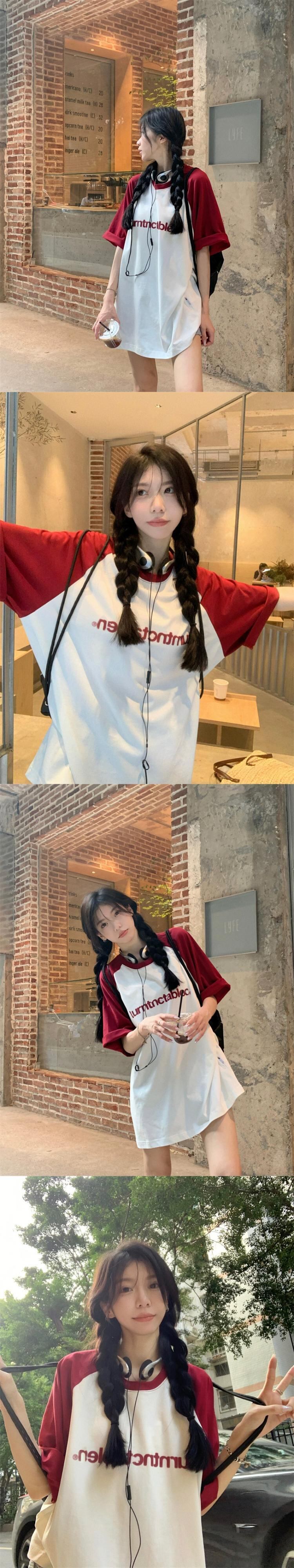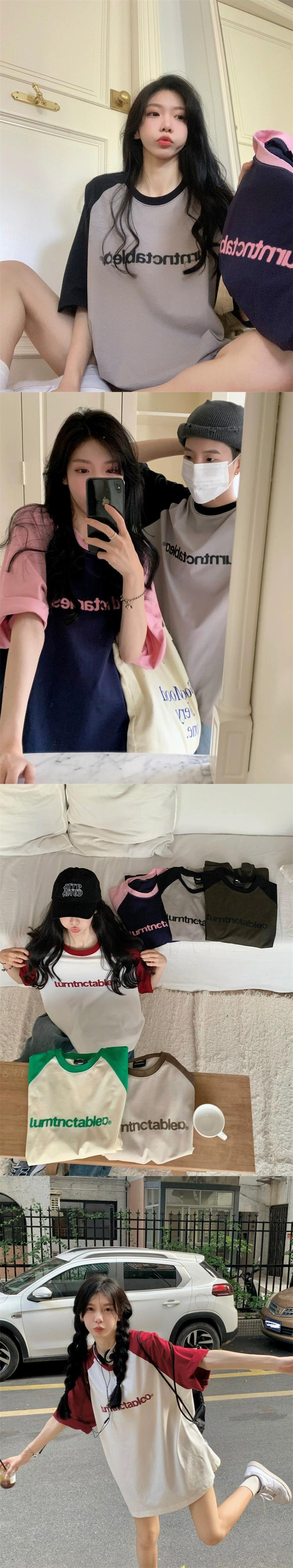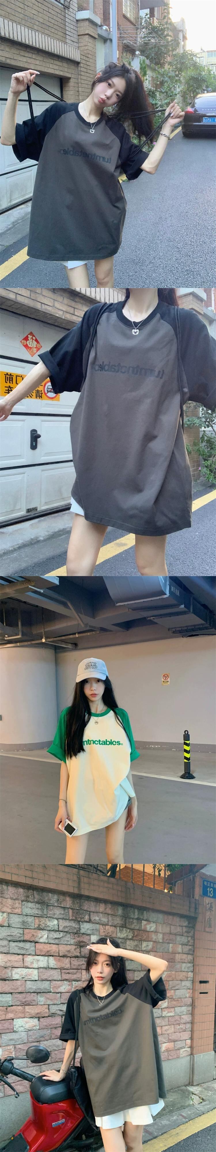 甘辛カラーコントラストレタープリント半袖Tシャツレディース夏の新しいアメリカンデザインセンススプライシングミッドレングストップトレンド 大人ガーリー スウィート キュート カジュアル サマー 夏物 missk65581563736