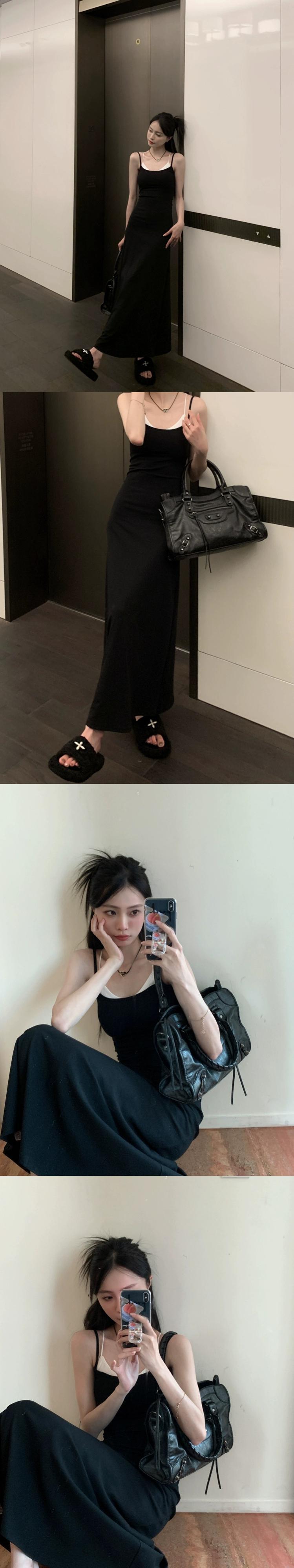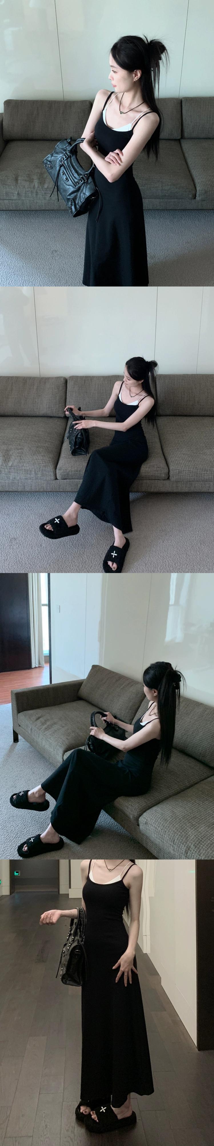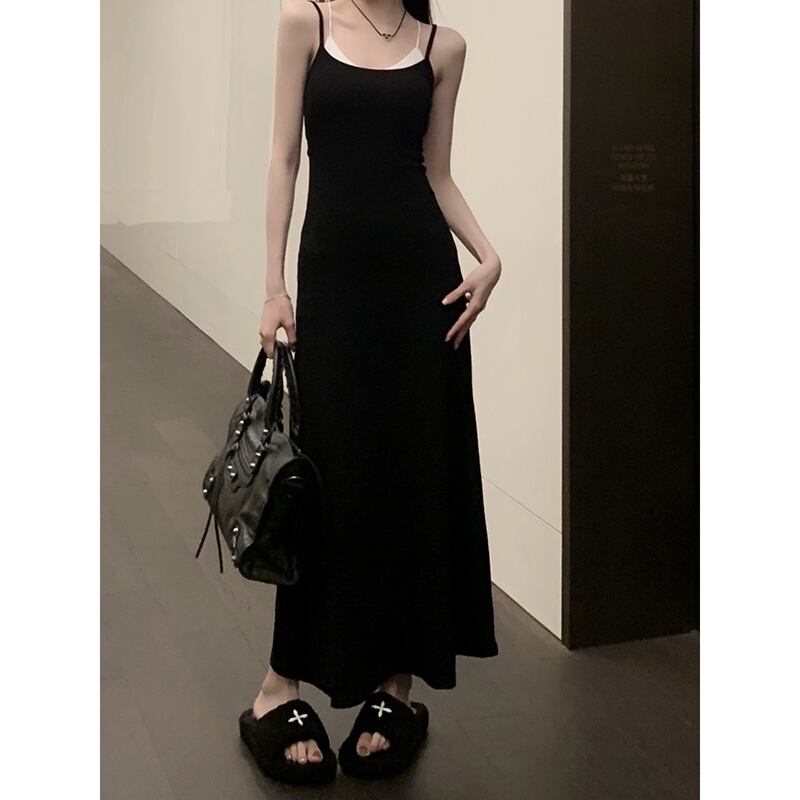 夏バージョン 2023 新しいウエスト痩身ファッションシックな黒のサスペンダードレスビッグスイングロングスカート女性シック ブラック サマー 夏物 missk47171341176