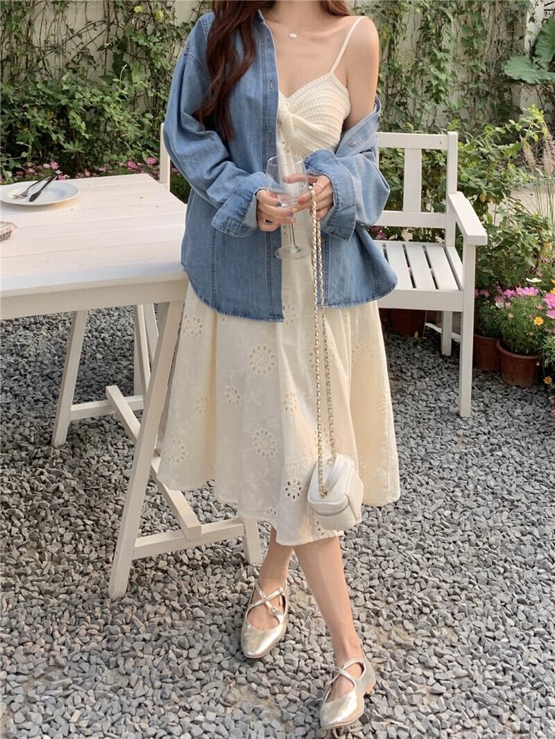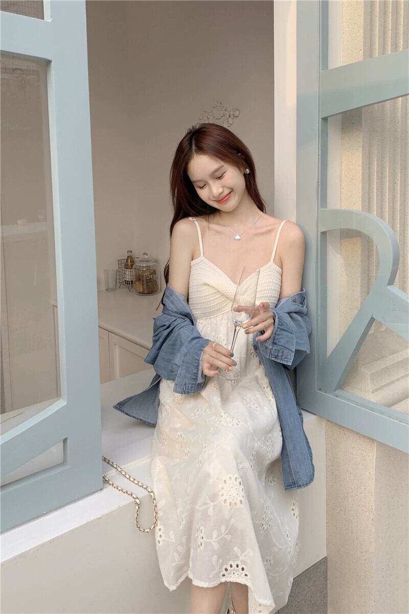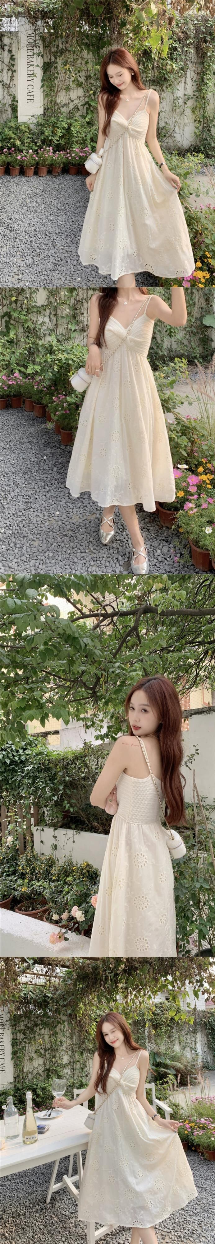 フレンチスタイルの穏やかな風サスペンダードレスの女性の夏の 2023 新しい中空ジャカードウエスト痩身気質ティーブレイクスカート サマー 夏物 missk51451006374