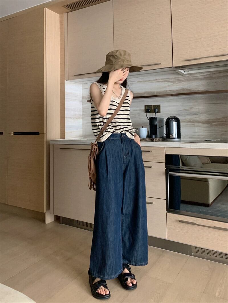 ゆったり9点ワイドレッグジーンズ2023年夏新作レトロハイウエスト薄型デザインストレートパンツ ハイウェスト サマー 夏物 missk56899215921