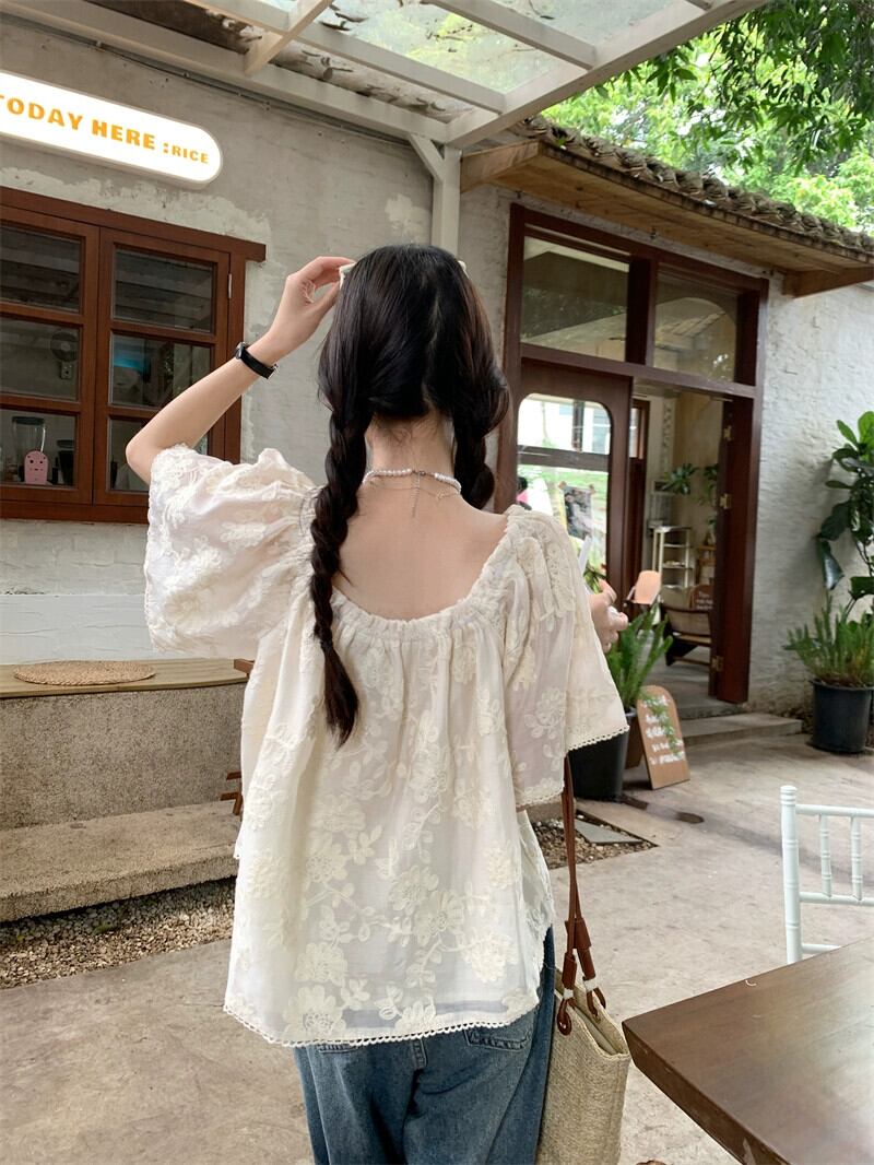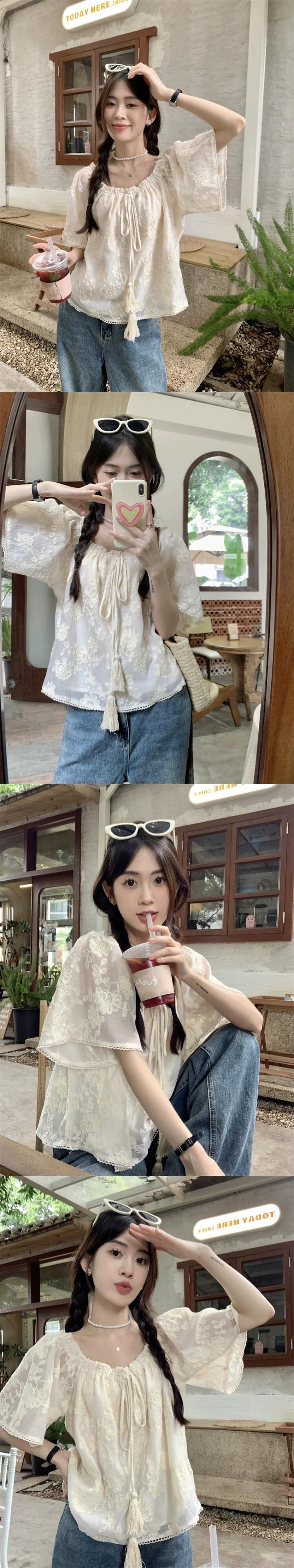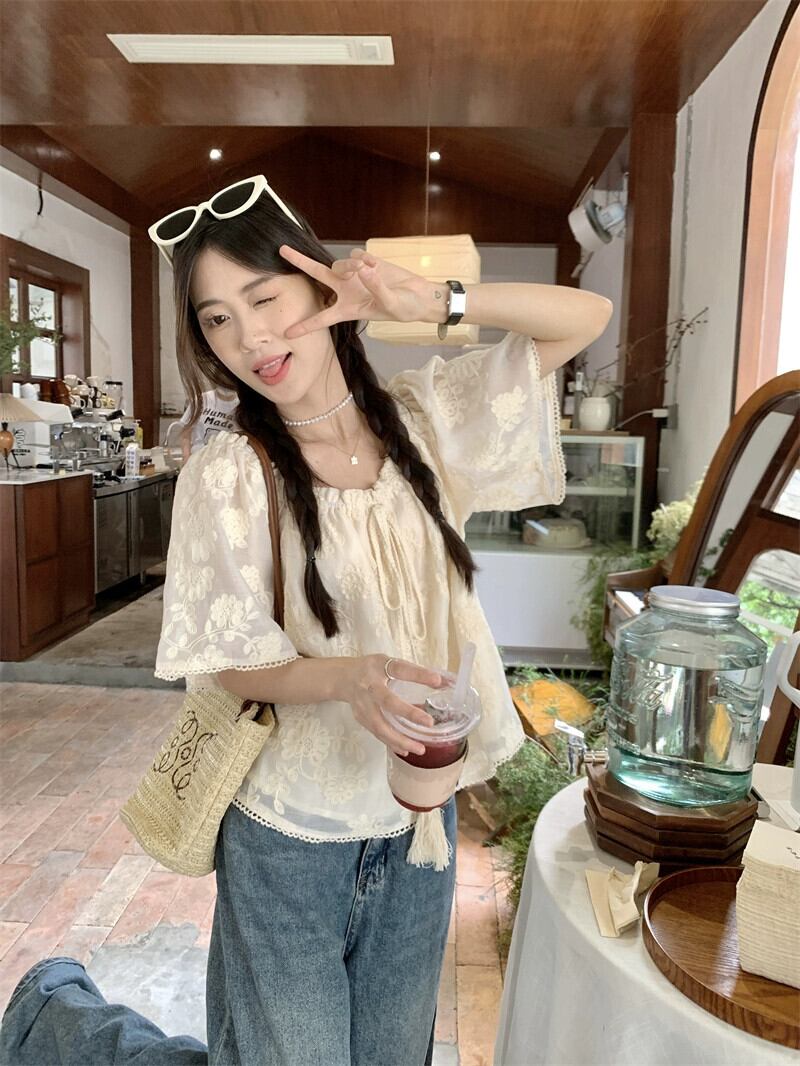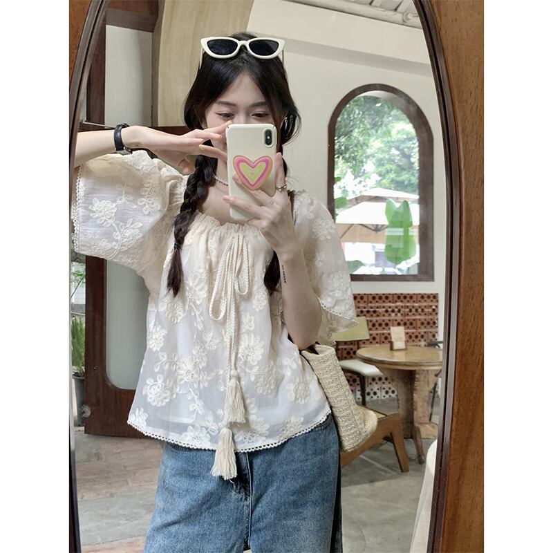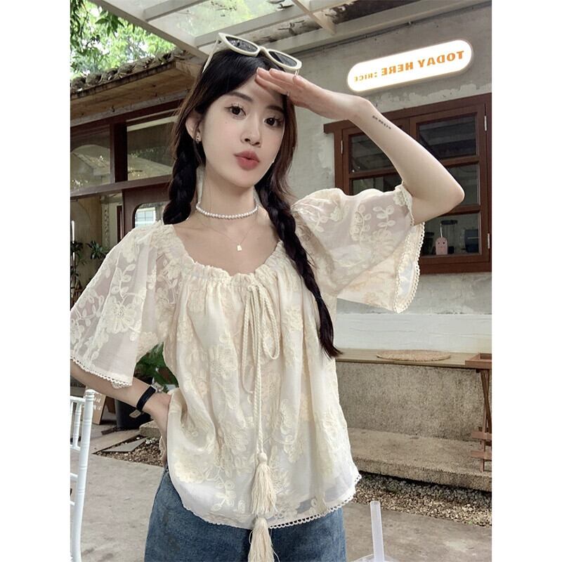 フレンチネクタイ半袖レースシャツ女性の夏の 2023 新しいハイエンド感覚ショートルーズ eign スタイルシックなトップ サマー 夏物 missk86938793025