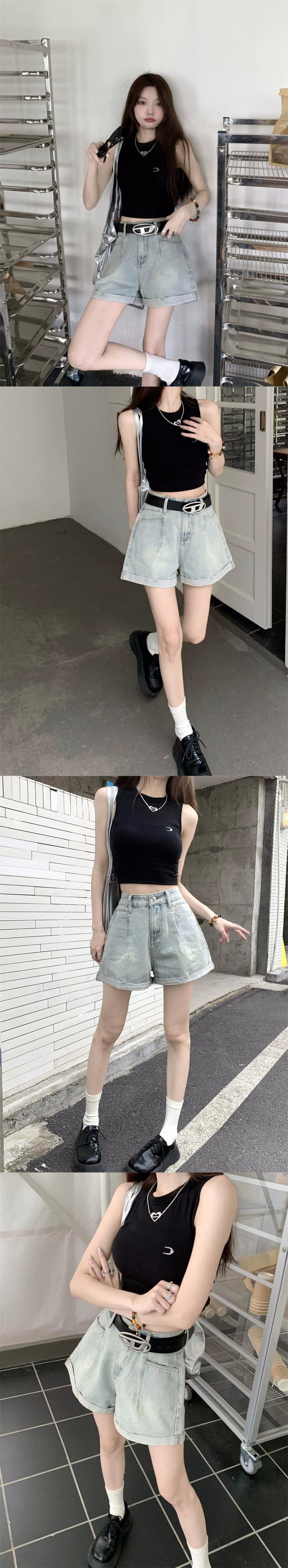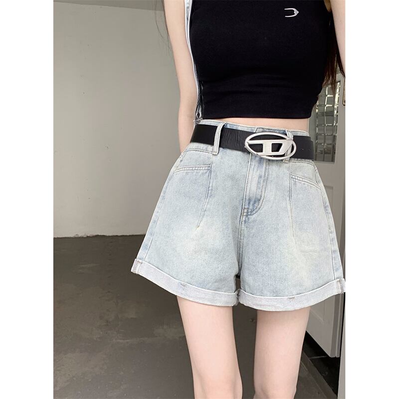 ニッチカーリーデニムショートパンツレディース夏新バージョンの小さなデザインセンスハイウエストストレートワイドレッグパンツトレンディ ハイウェスト サマー 夏物 ショーツ ブルマー ワイドパンツ missk73438020478
