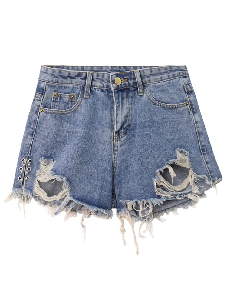 2023 夏新レトロハイウエスト痩身不規則な穴メッシュ赤外線着用セクシーなデニムショートパンツ女性 ハイウェスト レッド サマー 夏物 ショーツ ブルマー missk15140925884