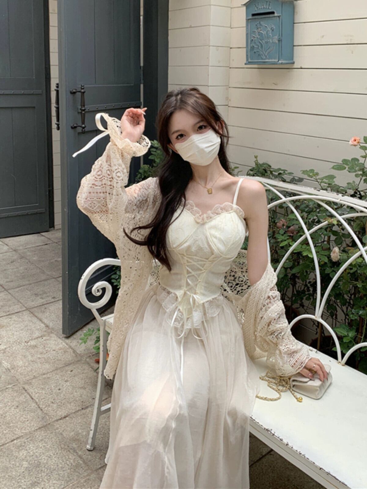 フレンチデザインストラップレースキャミソールカーディガンスカート女性の夏の2023新しいファッションスリーピーススーツ サマー 夏物 missk8112779895