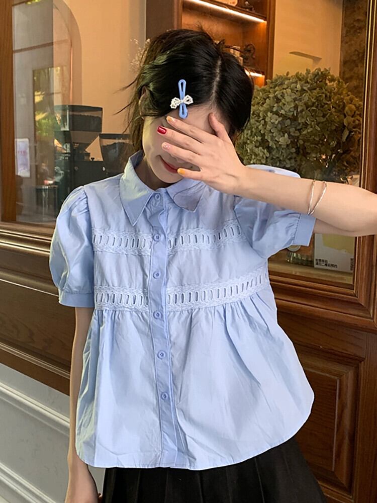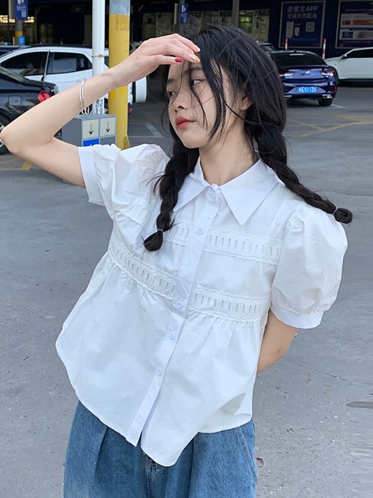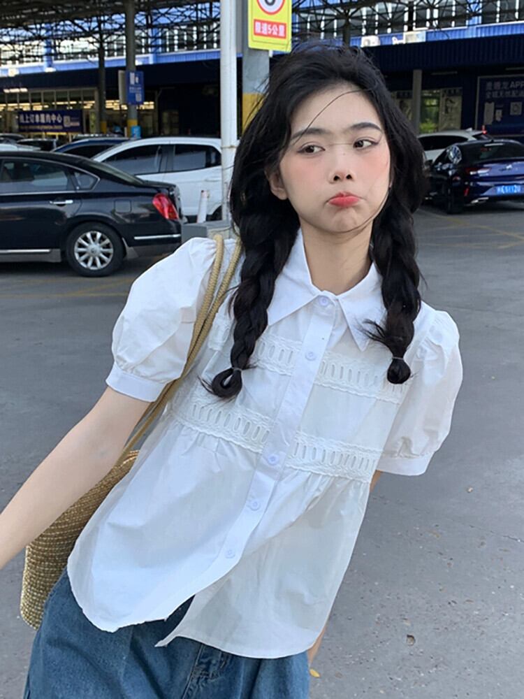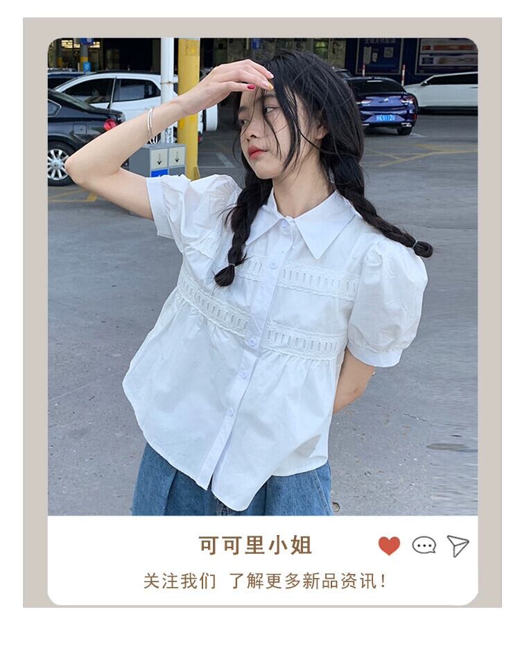 ポロカラーバブル半袖白シックシャツ夏の 2023 新しいファッションスモールトップ女性のシック ホワイト サマー 夏物 missk23713100306
