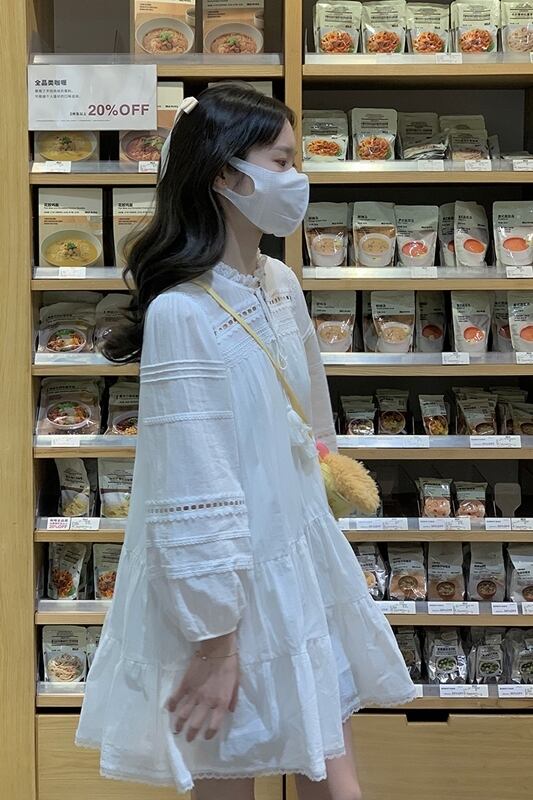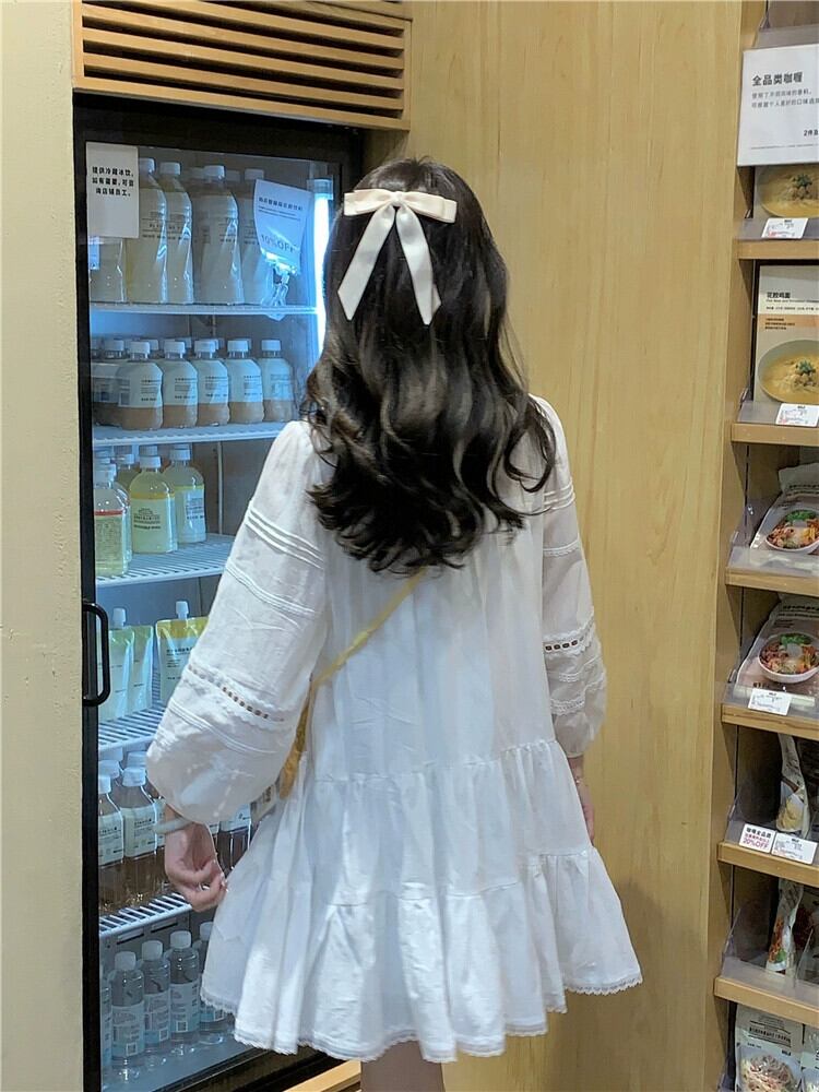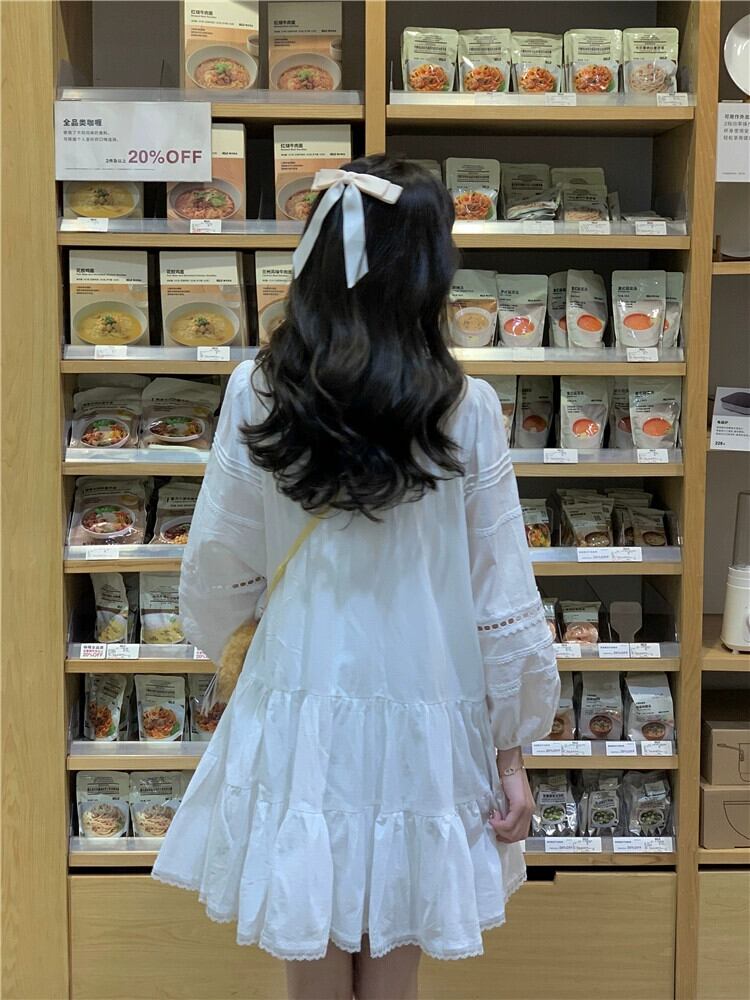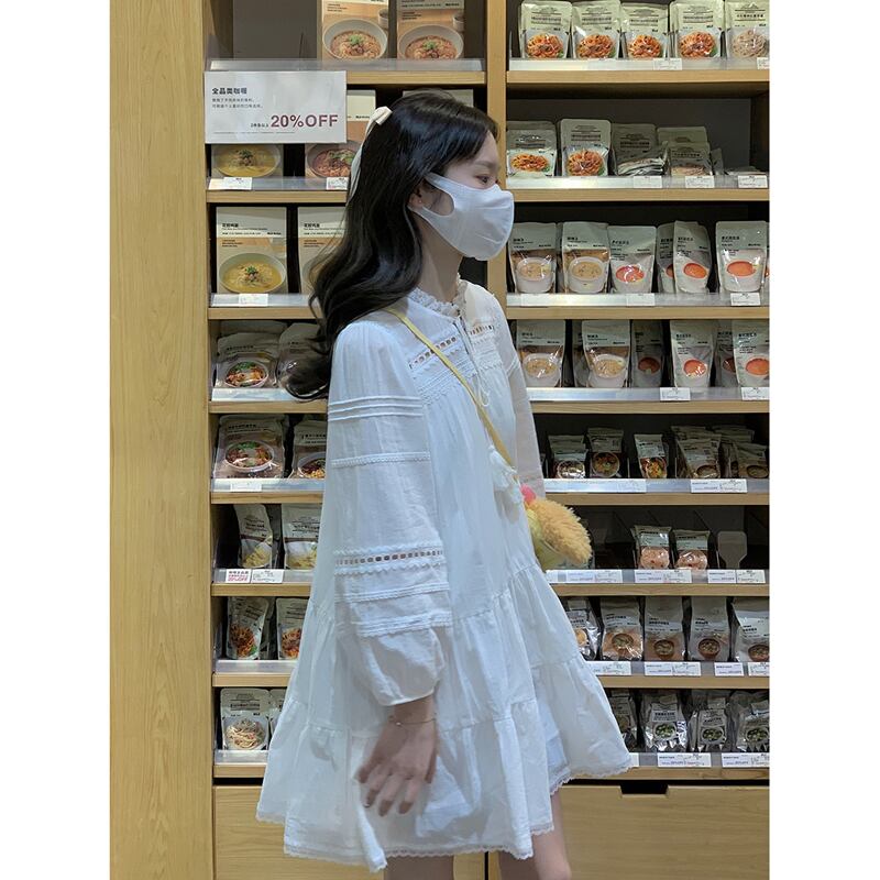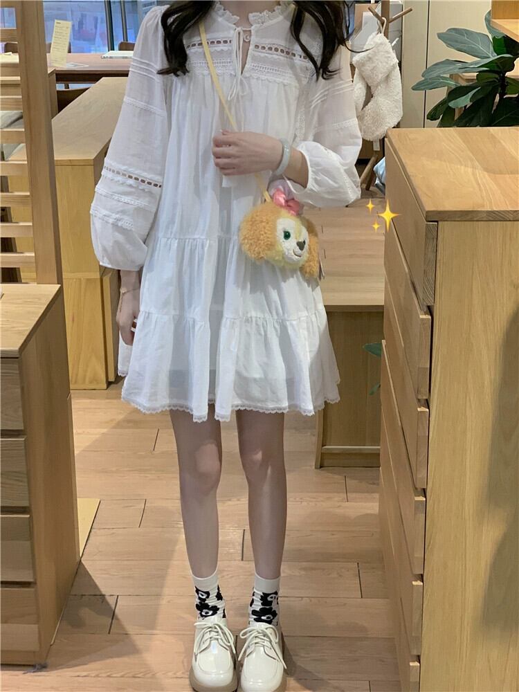 甘い中空デザイン長袖ドレスの女性の 2023 夏の新しい穏やかな風レースステッチ A ラインスカート ロング 大人ガーリー スウィート キュート カジュアル サマー 夏物 Aライン missk41615186128