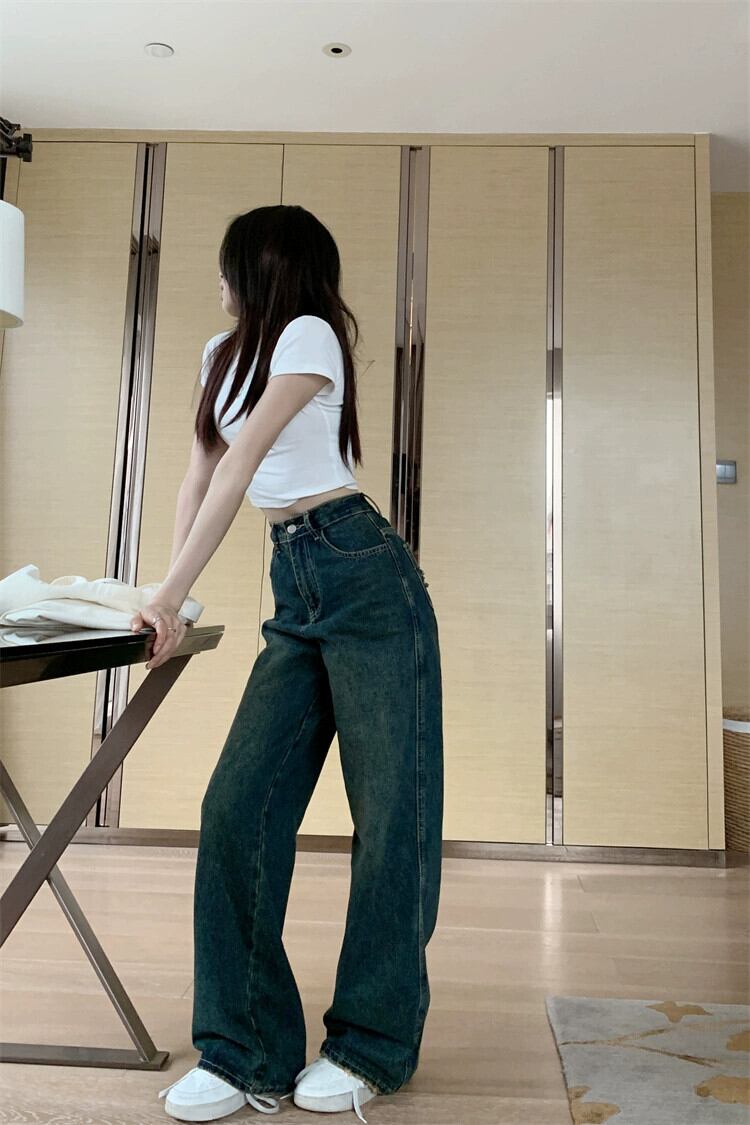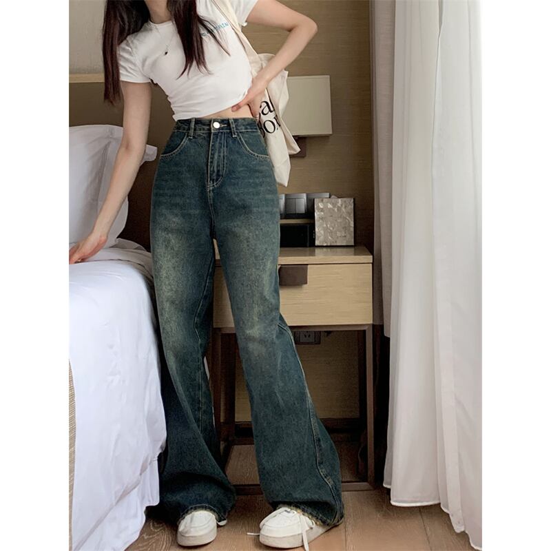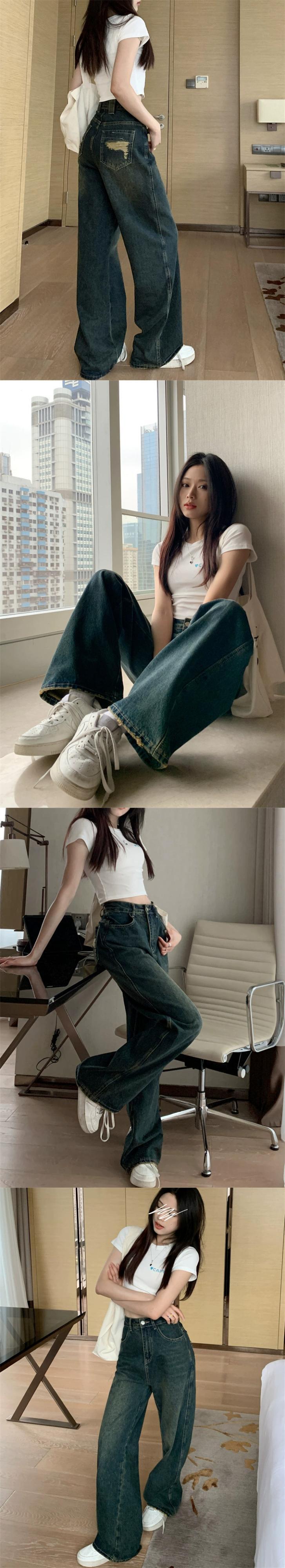 破れたデザインセンスジーンズ女性の夏の 2023 新しいハイウエスト痩身レトロストレートワイドレッグモップパンツ ハイウェスト サマー 夏物 ワイドパンツ missk60186496015