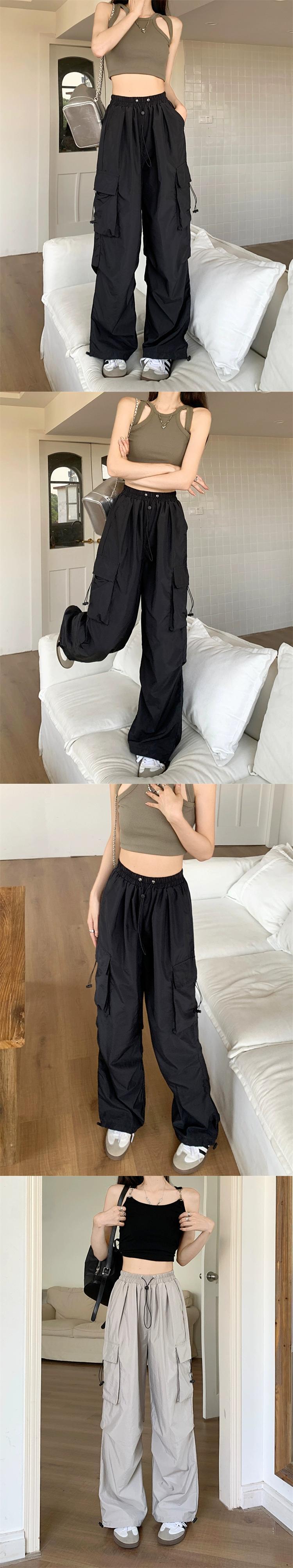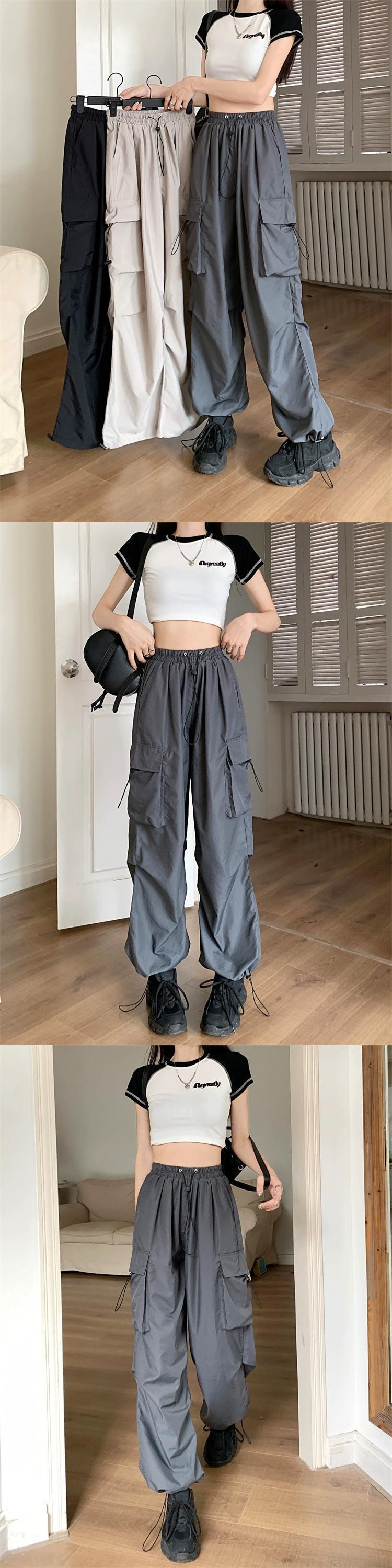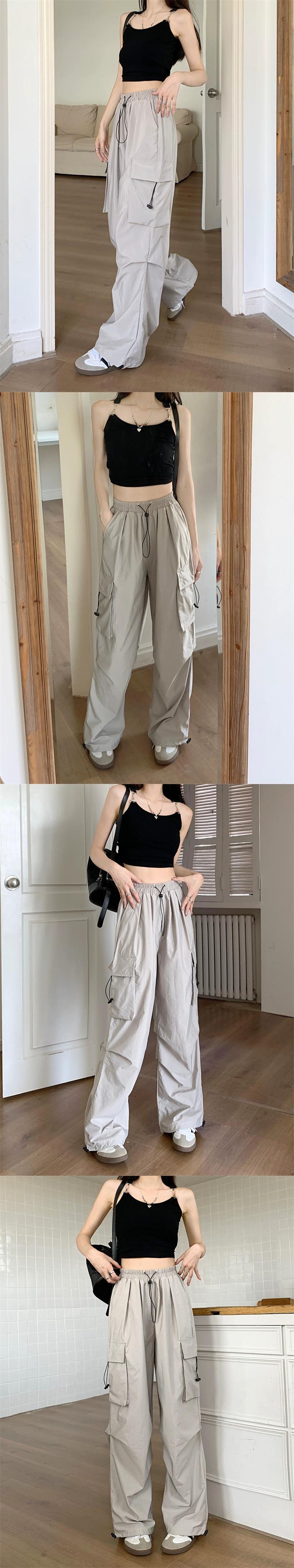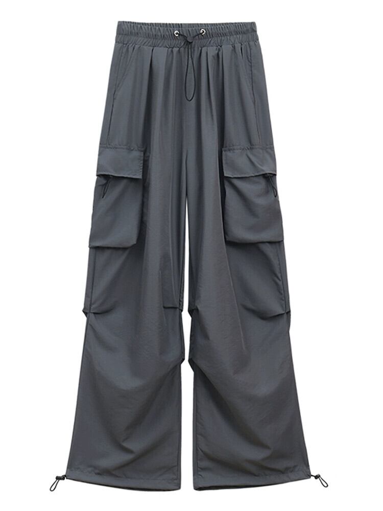 アメリカン速乾オーバーオールレディース夏ハイウエスト痩身ドローストリングデザインワイドレッグパンツカジュアルパンツグレーパンツ ハイウェスト サマー 夏物 missk90128472798