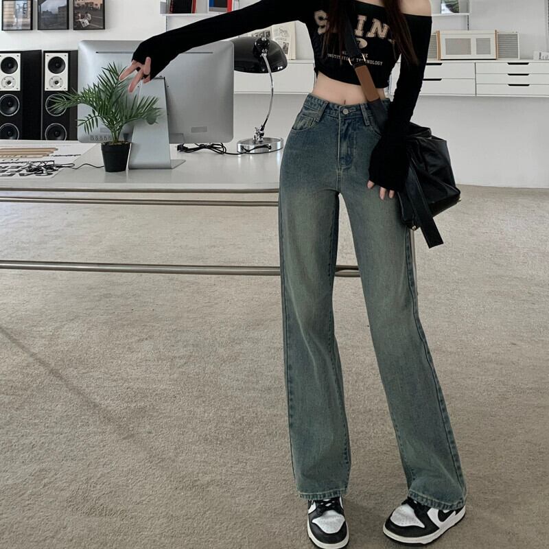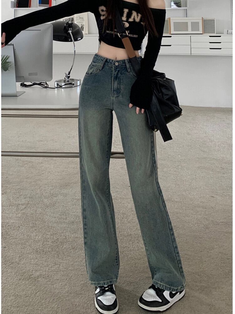 レトロハイウエストストレートジーンズレディース2023夏新作着痩せオールマッチデザインセンスワイドレッグストレートロングパンツ サマー 夏物 missk10675464756