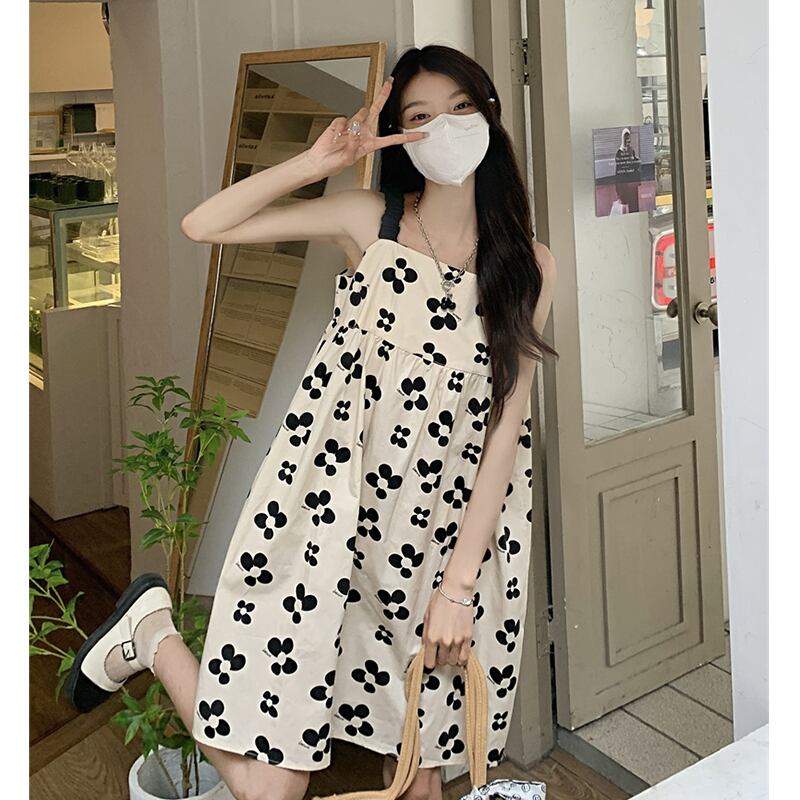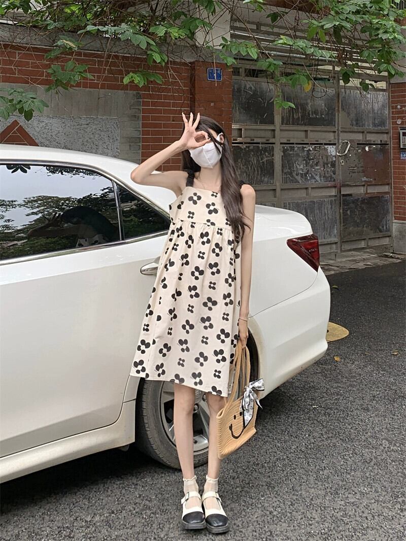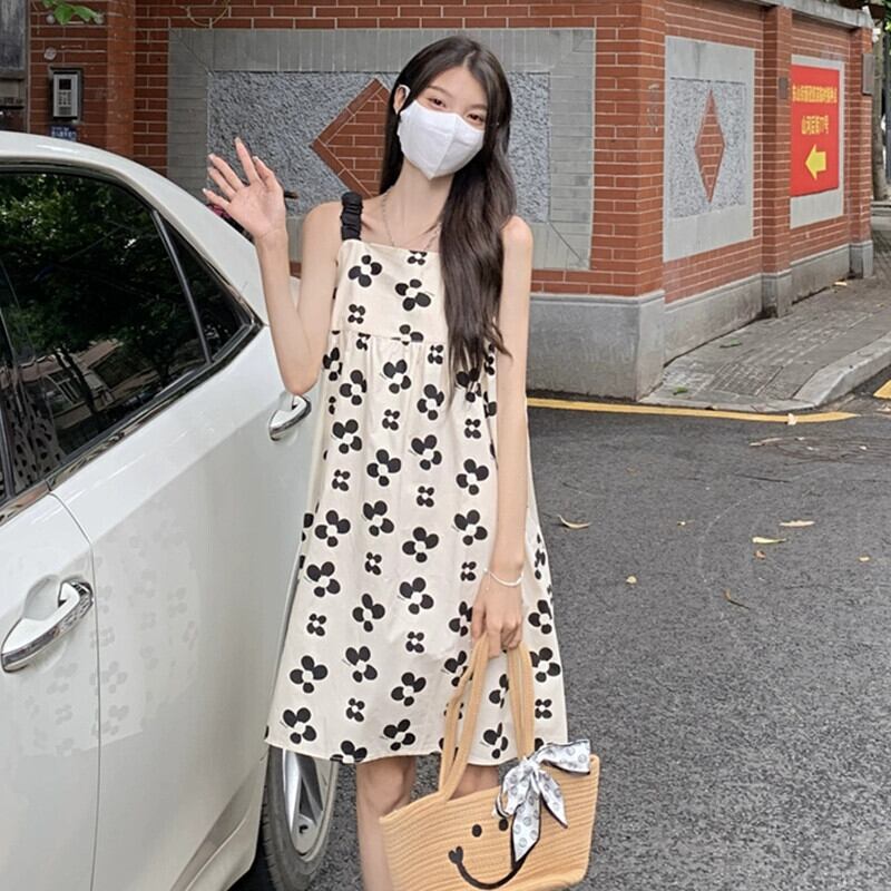 レトロフレンチニッチ花柄サスペンダースカート女性の夏 2023 新しい純粋な欲望ルーズハイウエストドレス人形スカート ハイウェスト サマー 夏物 ピュア missk39869707425