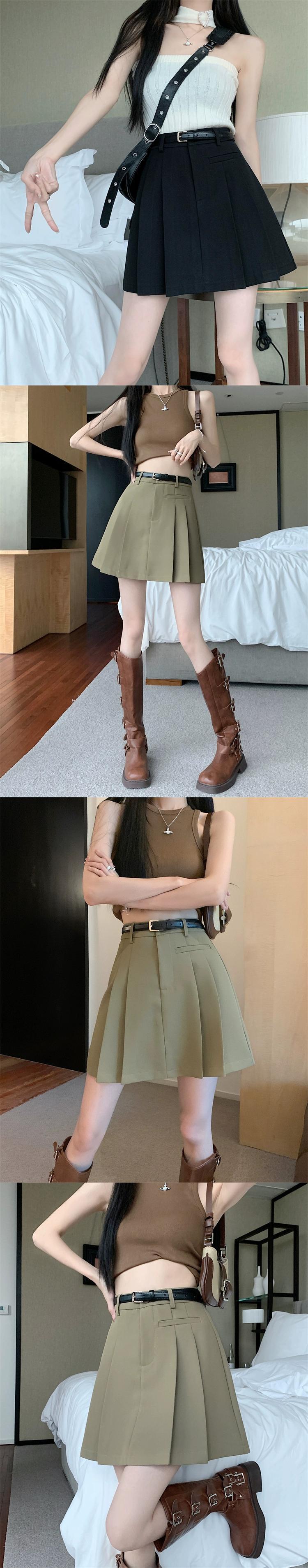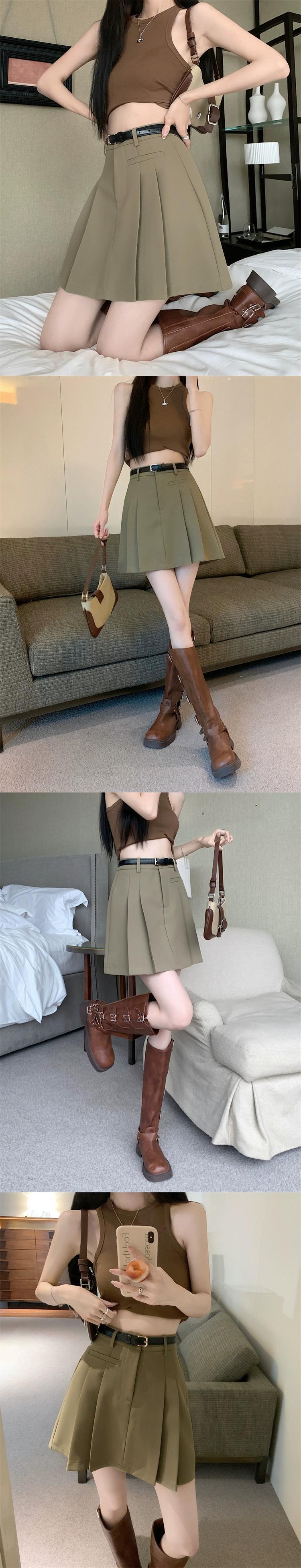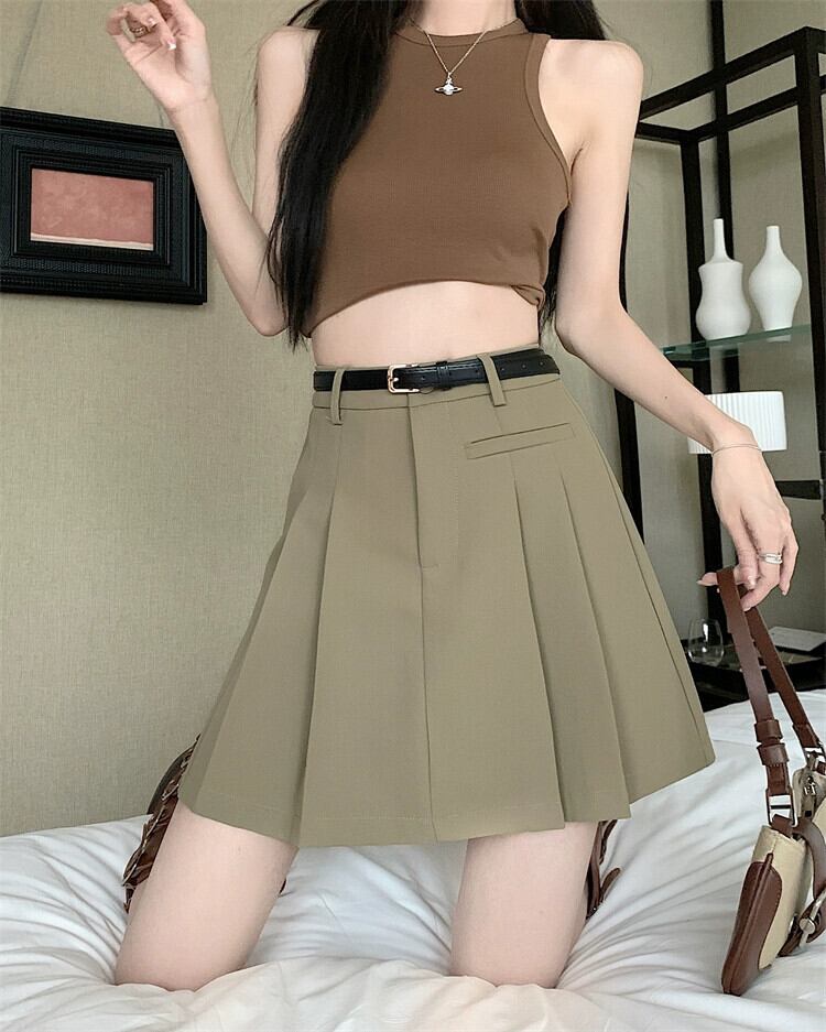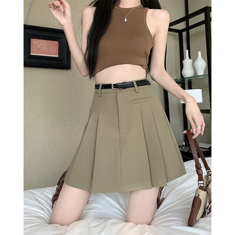 カーキスカート夏 2023 新しいインハイウエストファッションプリーツ A ラインスカート防光スカート女性 ハイウェスト サマー 夏物 Aライン missk45852989558