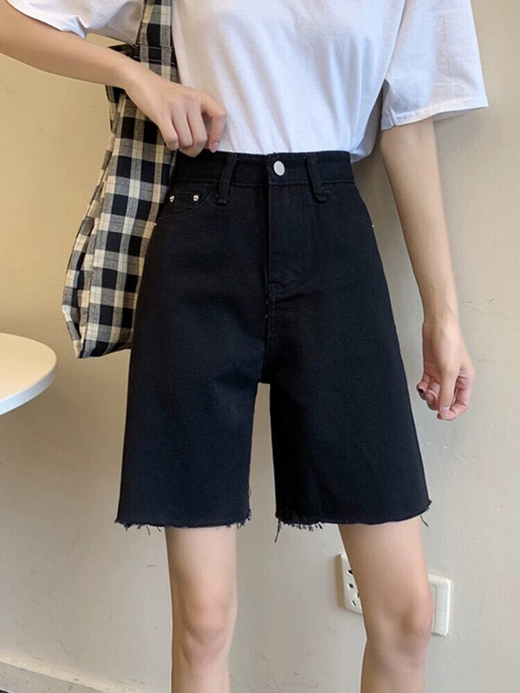 5点ジーンズレディース夏バージョン2023新しいハイウエストスリムストレートオールマッチルーズブラックローエッジパンツ ハイウェスト サマー 夏物 missk77784939531