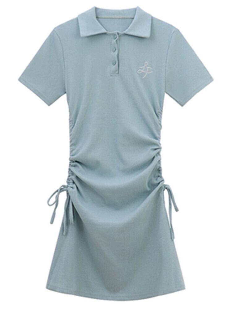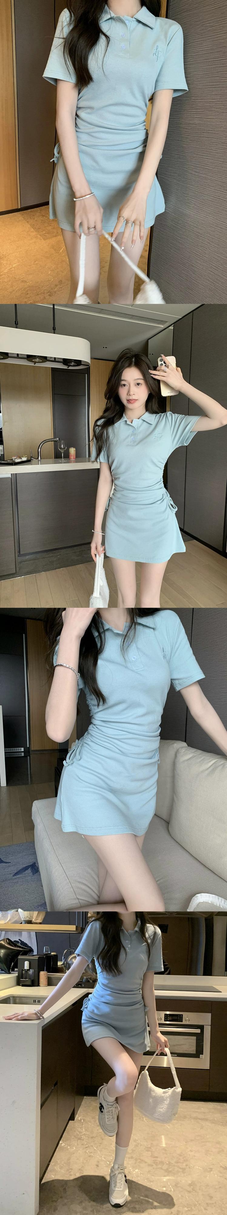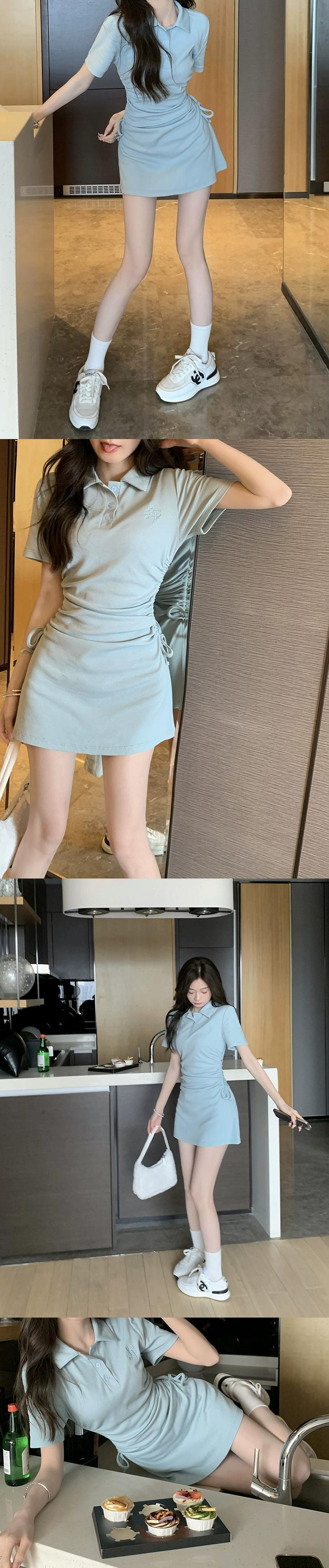 ポロカラードレス女性の夏バージョン 2023 新しいスリムフィットと薄い巾着甘いバッグヒップ小さな黒のスカート ブラック 大人ガーリー スウィート キュート カジュアル サマー 夏物 missk44296283722