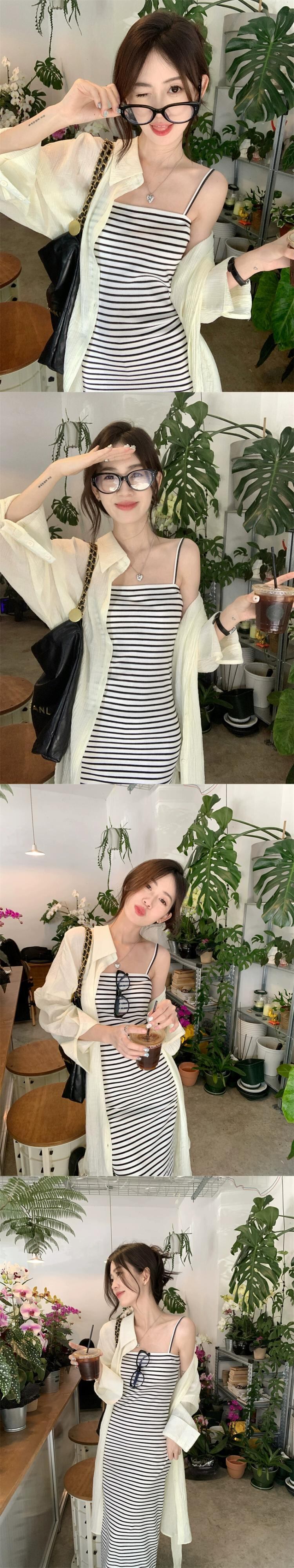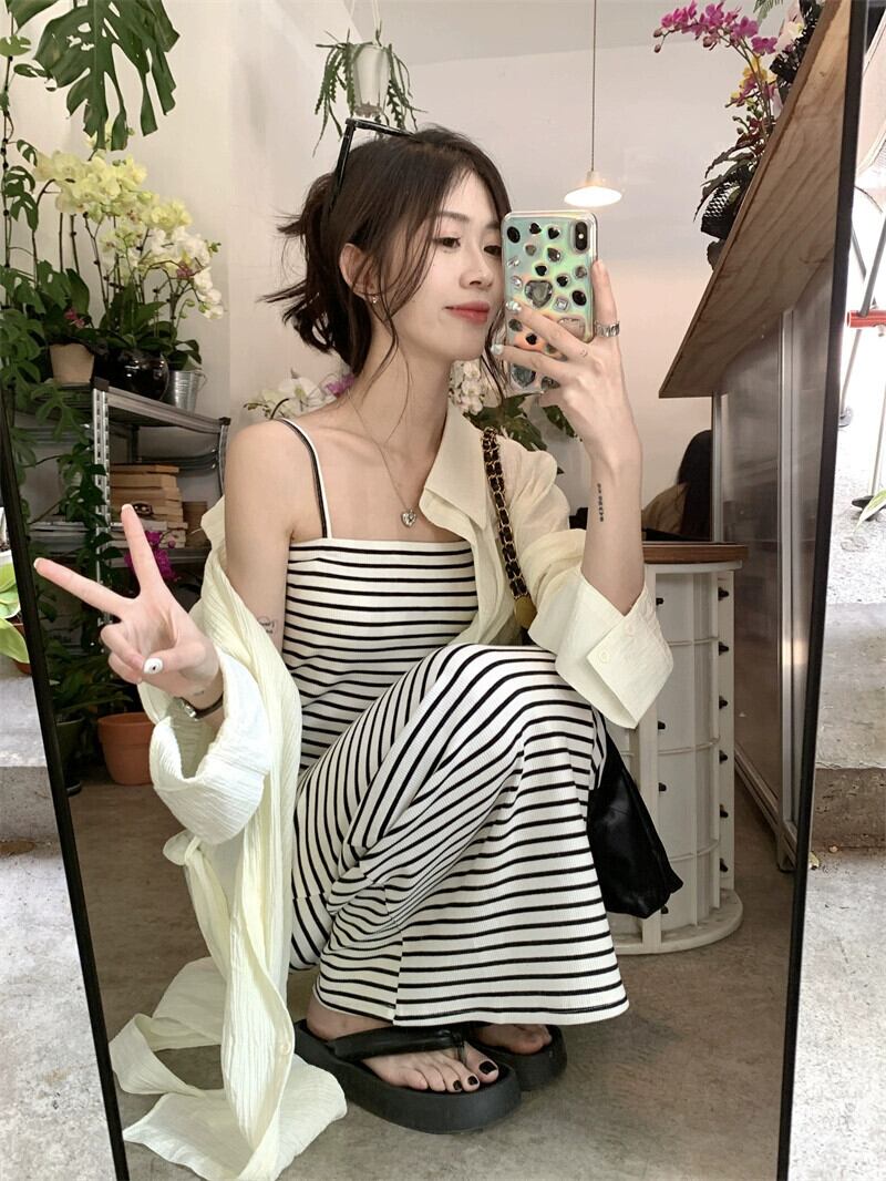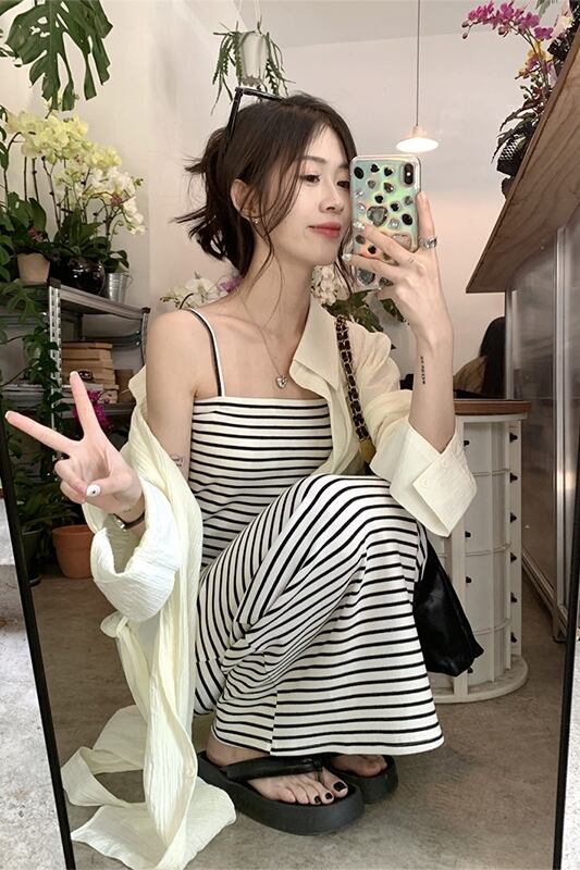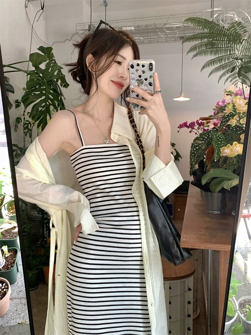 ウエストスリムストライプサスペンダードレスロング日焼け止めカーディガン女性の夏の 2023 新しいファッションスーツ サマー 夏物 missk50491781061
