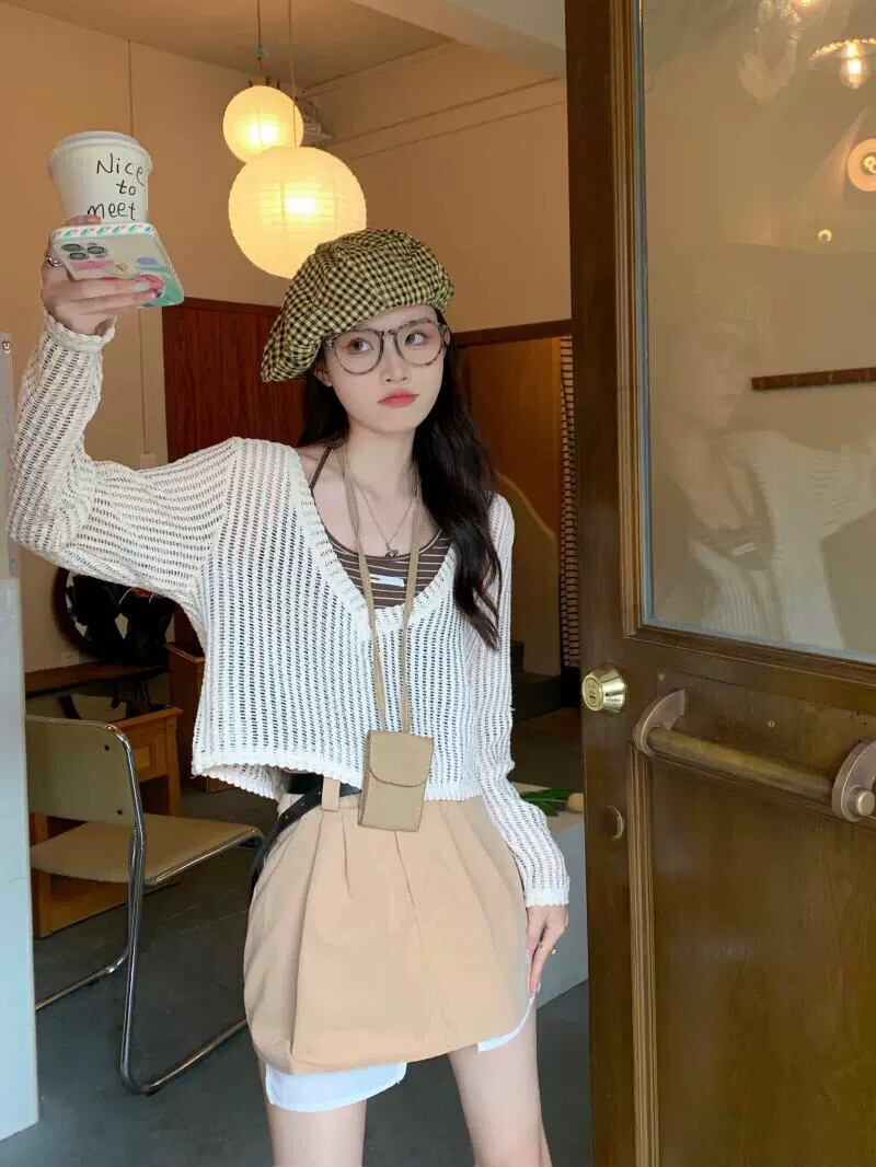 スパイススーツ中空長袖日焼け止めブラウスストライプ吊りネックサスペンダー女性の夏の 2023 新しいファッションツーピースセット ロング サマー 夏物 missk46254831546