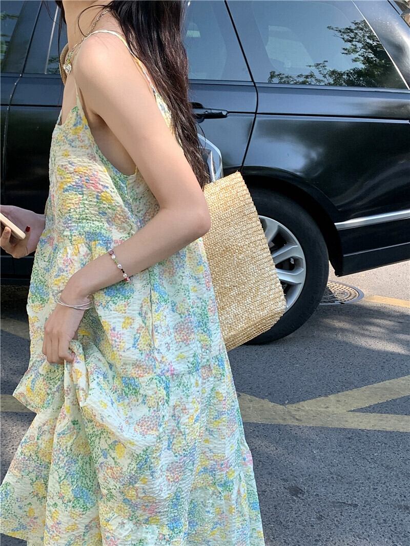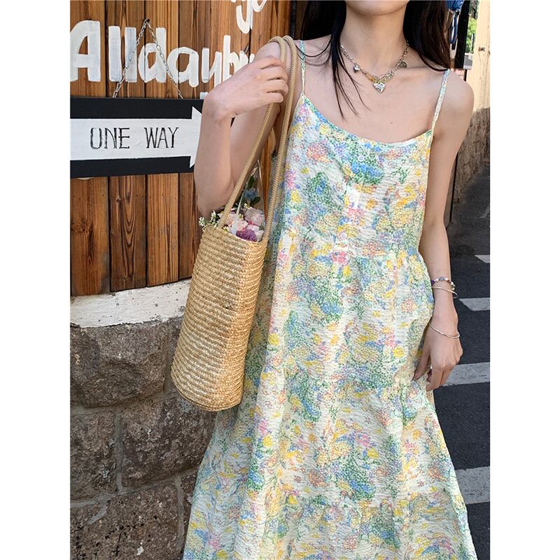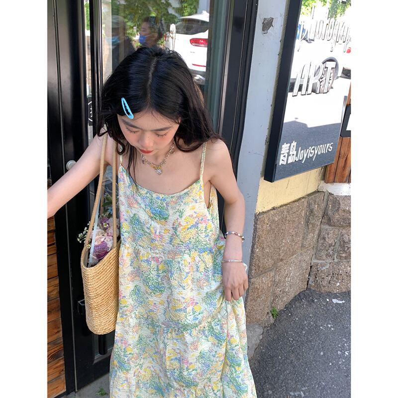 インスウィートノースリーブ花柄ドレス夏 2023 新しい eign スタイルルーズファッションミッドレングスサスペンダースカート女性 大人ガーリー キュート カジュアル サマー 夏物 missk74609025685