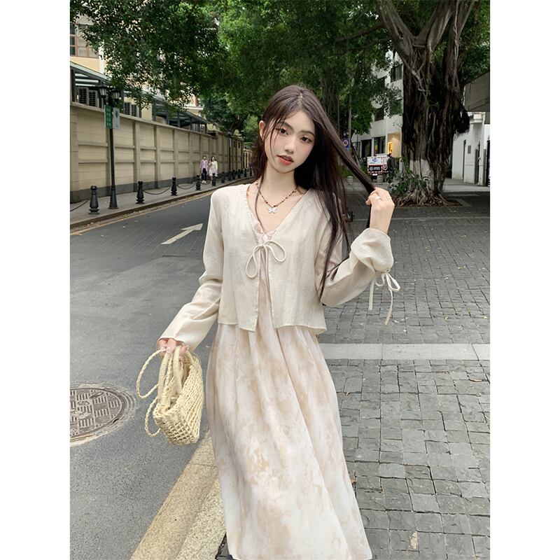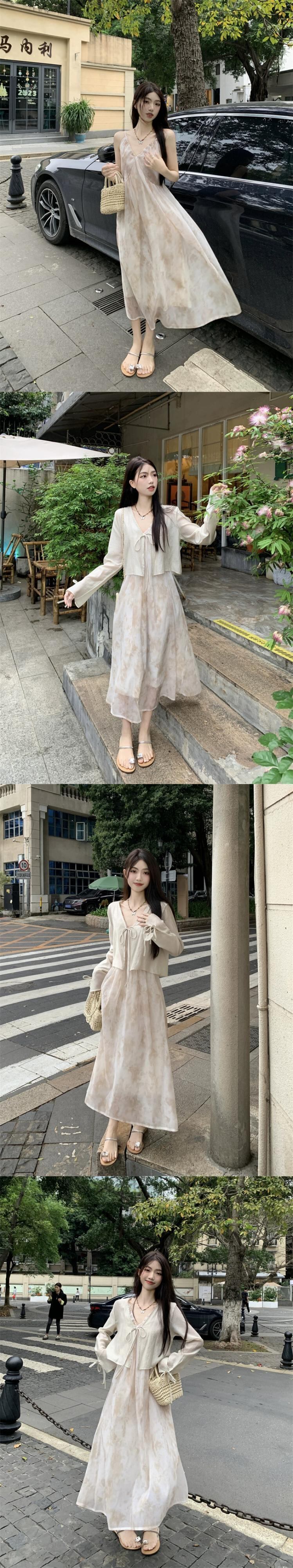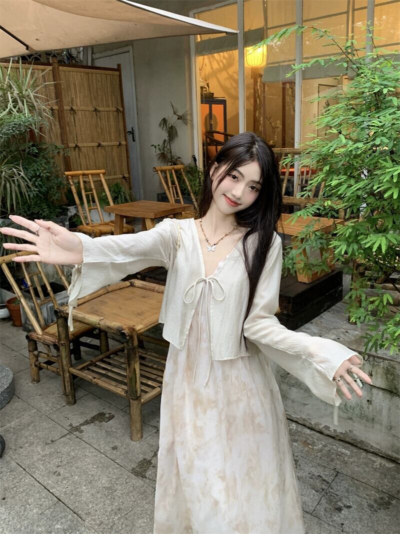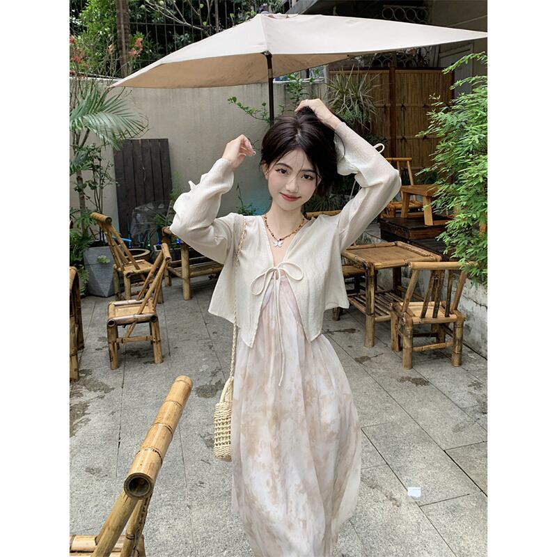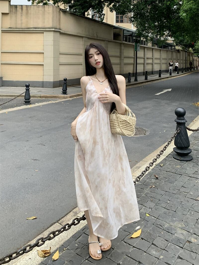 タイダイサスペンダードレス女性の夏の 2023 新しいウエストライン痩身優しい風非常に妖精の気質ティーブレイクスカート サマー 夏物 missk54648012636