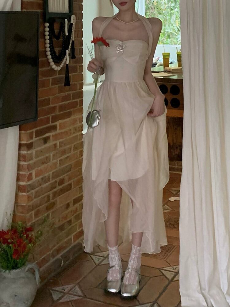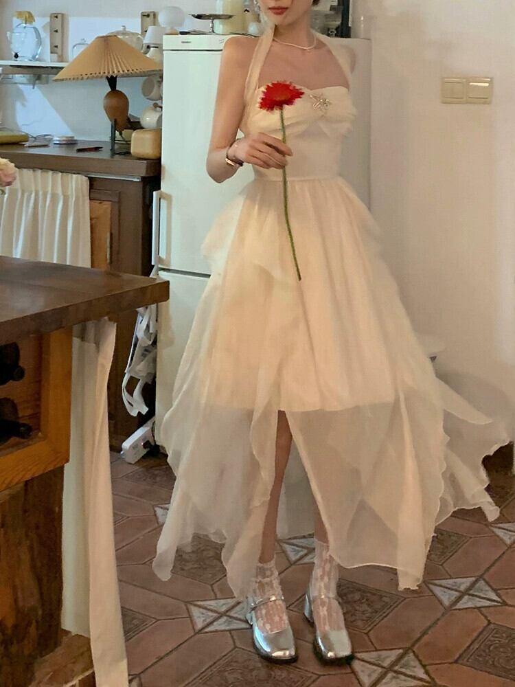 2023年夏新作逃亡者プリンセス純粋な欲望ニッチデザインセンス不規則休暇チューブトップウエストハンギングネックフェアリー サマー 夏物 ピュア missk68217290772