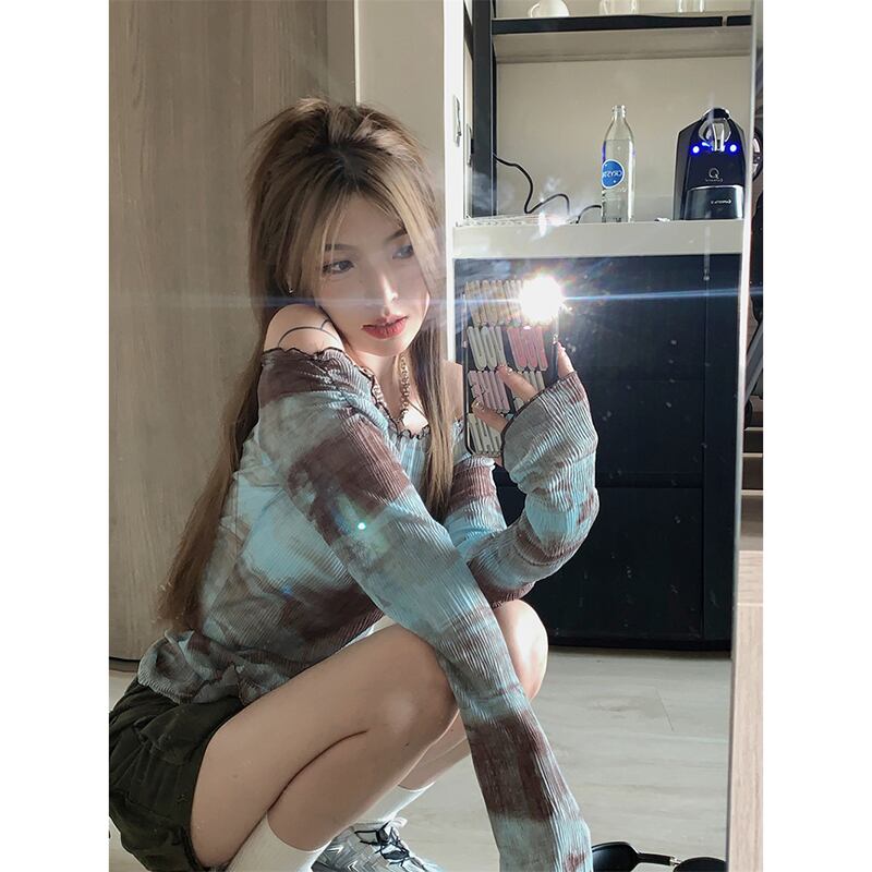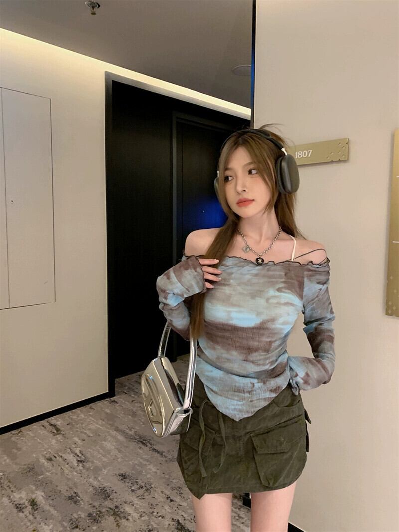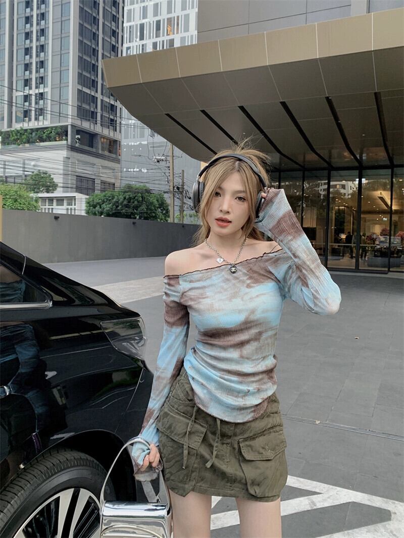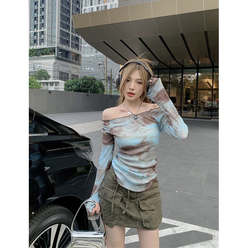 2023年夏新作ニッチシックタイダイプリントスタイル不規則なワンショルダー長袖Tシャツ女性シック ロング サマー 夏物 missk32745090560