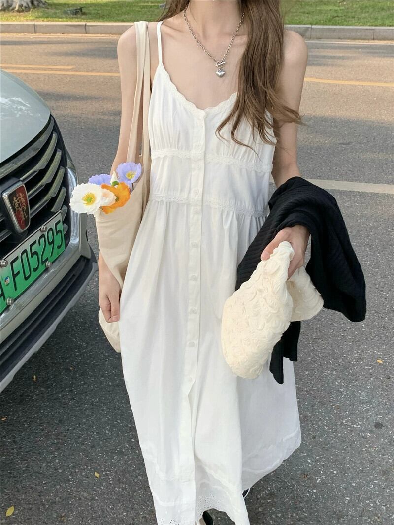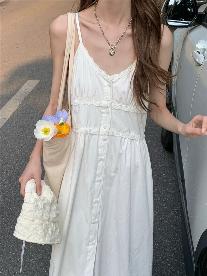 レースサスペンダースカートとボトニングスカート夏 2023 新しいシックなウエストスリムドレス婦人服 サマー 夏物 missk86231855840