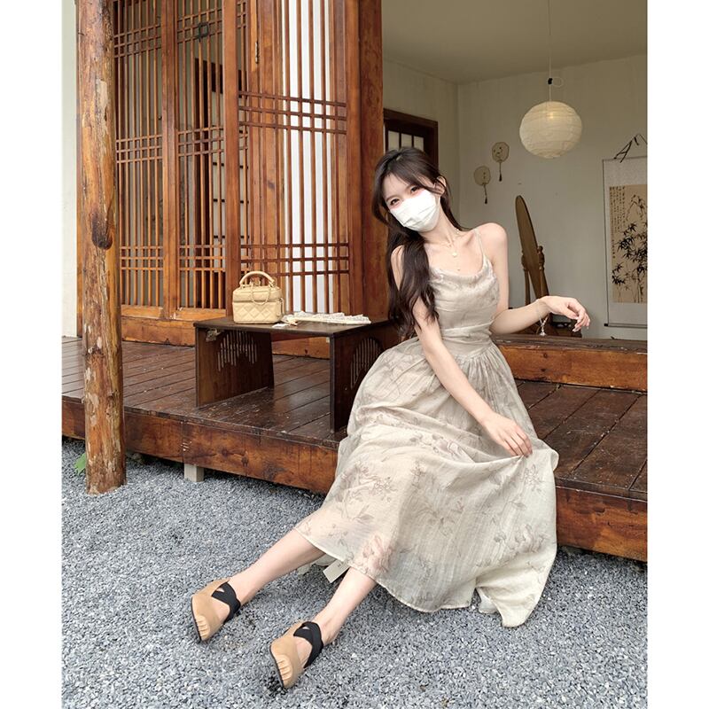禅スタイルサスペンダードレス婦人服夏 2023 新しいウエストライン痩身妖精花気質ロングスカート サマー 夏物 花柄 missk98673589453
