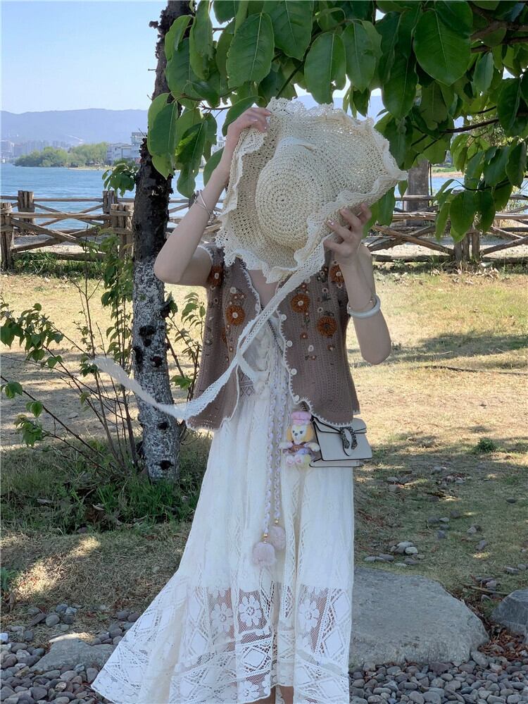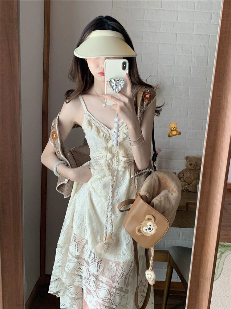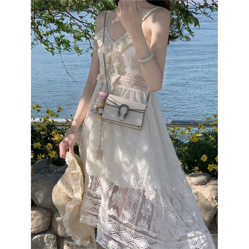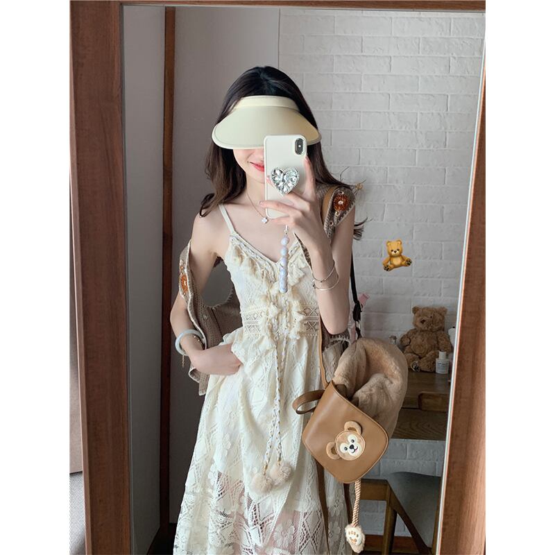 エスニック風メッシュサスペンダードレス夏 2023 新しい eign スタイルホリデーファッションウエストミッドレングスの女性のスカート サマー 夏物 missk73732998560