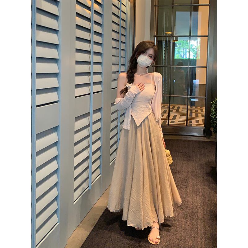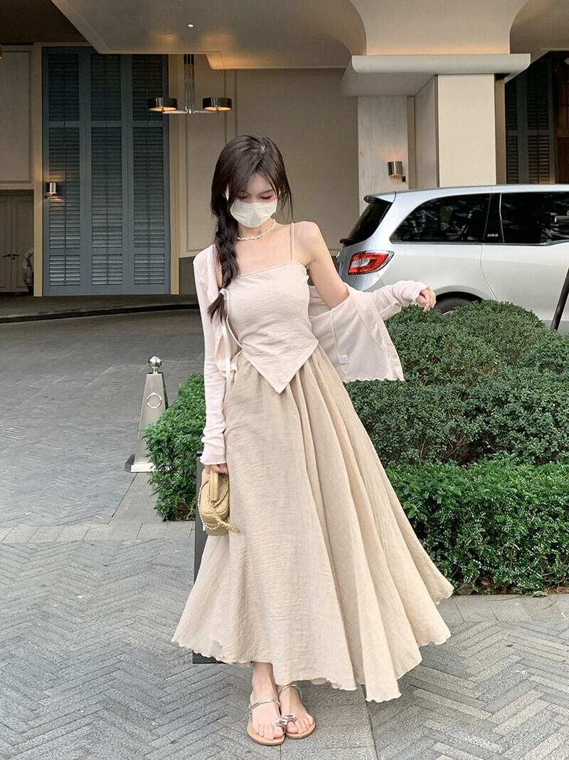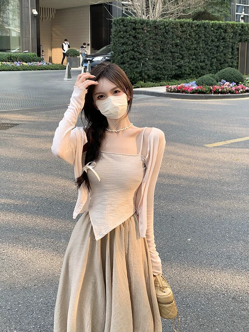 不規則な純粋な欲望底キャミソールカーディガンミッドレングススカート女性の夏の 2023 新しいファッションスーツ サマー 夏物 ピュア missk27080925237