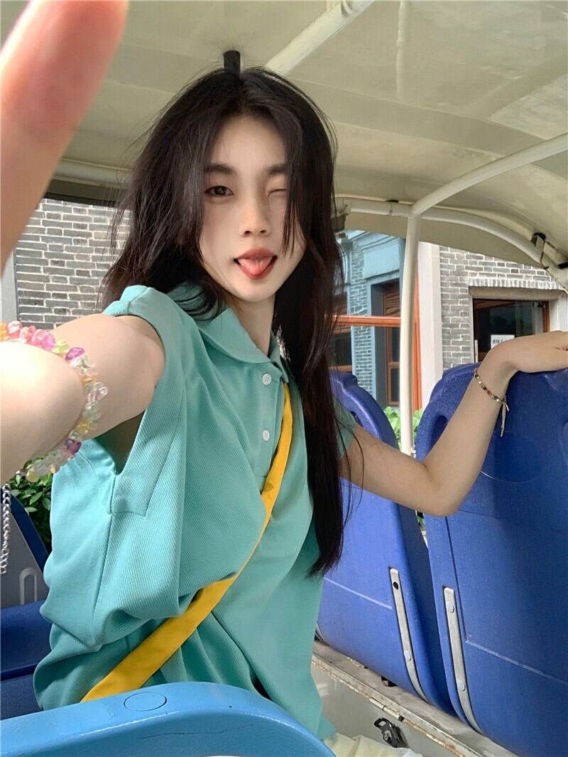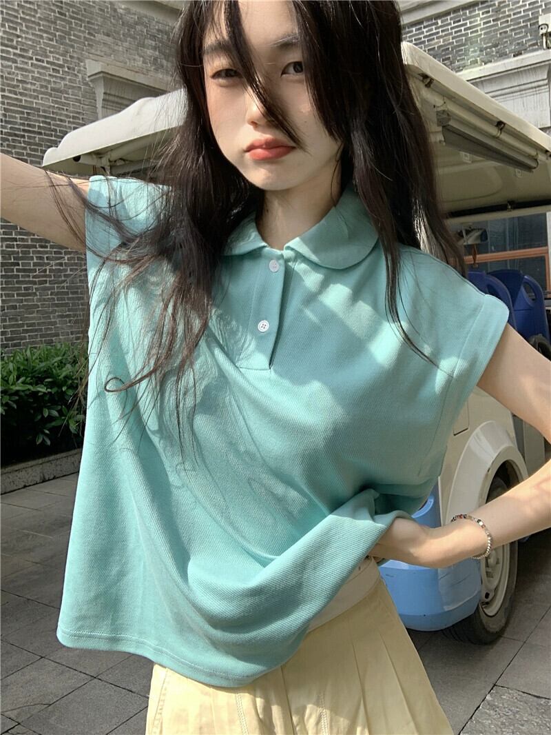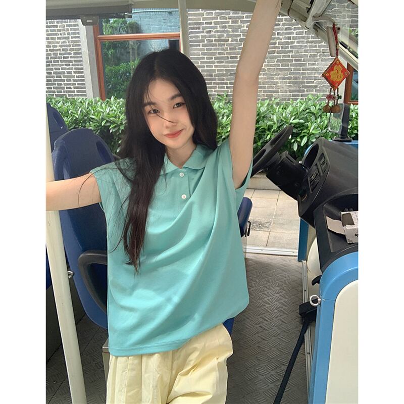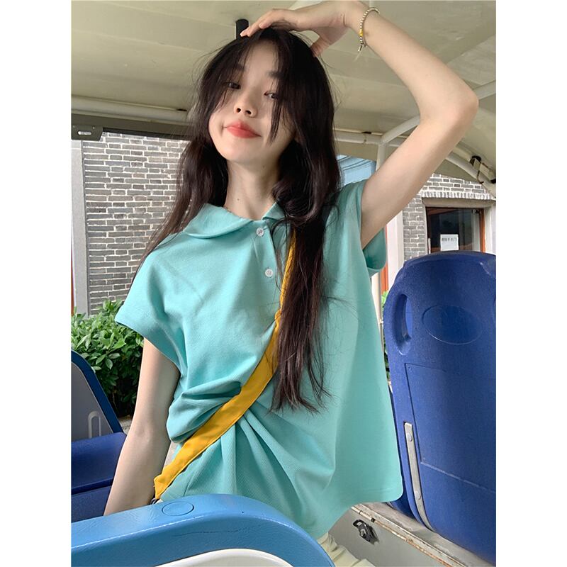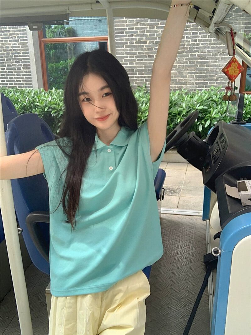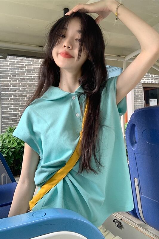 ポロカラー Tシャツ女性の夏の 2023 新しいカレッジスタイルルーズシックなラペル学生オールマッチ半袖トップイン サマー 夏物 missk1290667411