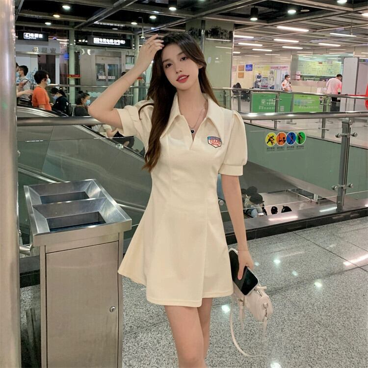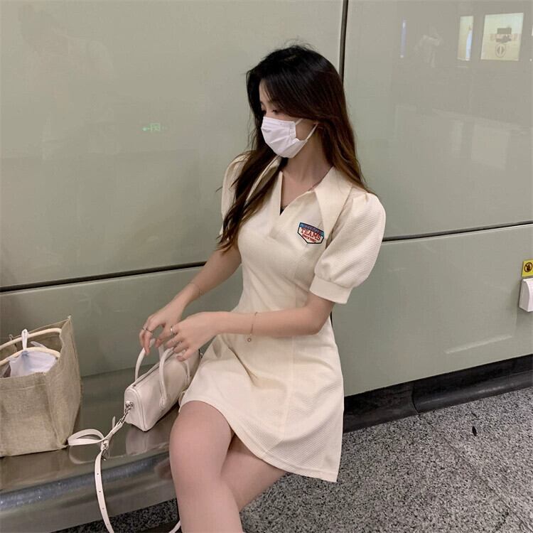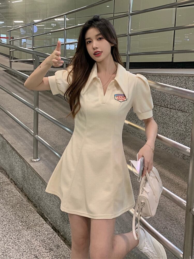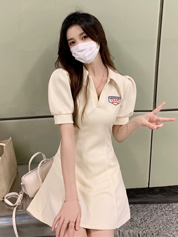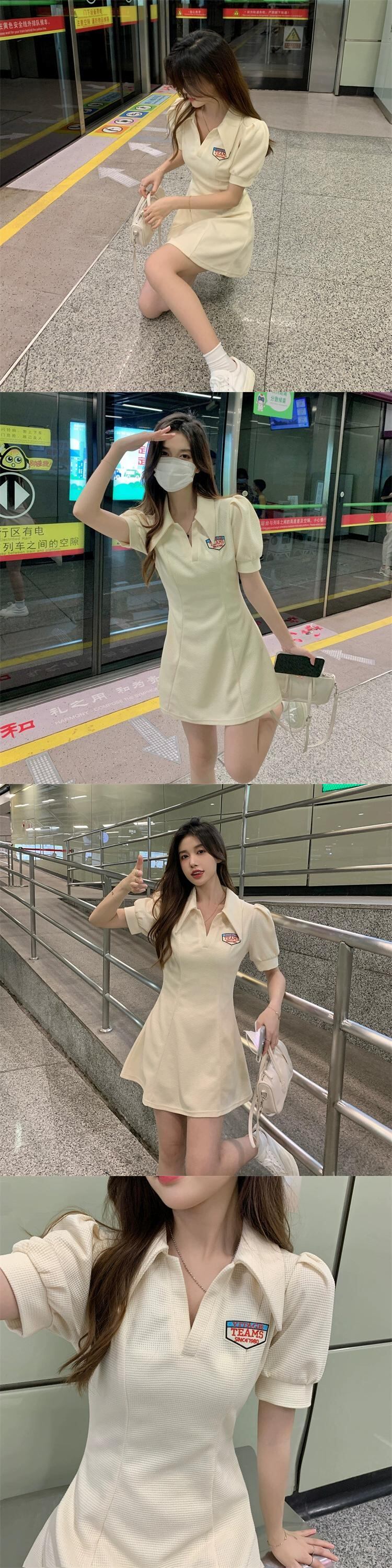 アメリカンポロカラードレスレディース2023夏新文字刺繍甘辛ウエスト痩身半袖Aラインスカート 大人ガーリー スウィート キュート カジュアル サマー 夏物 missk21871680866