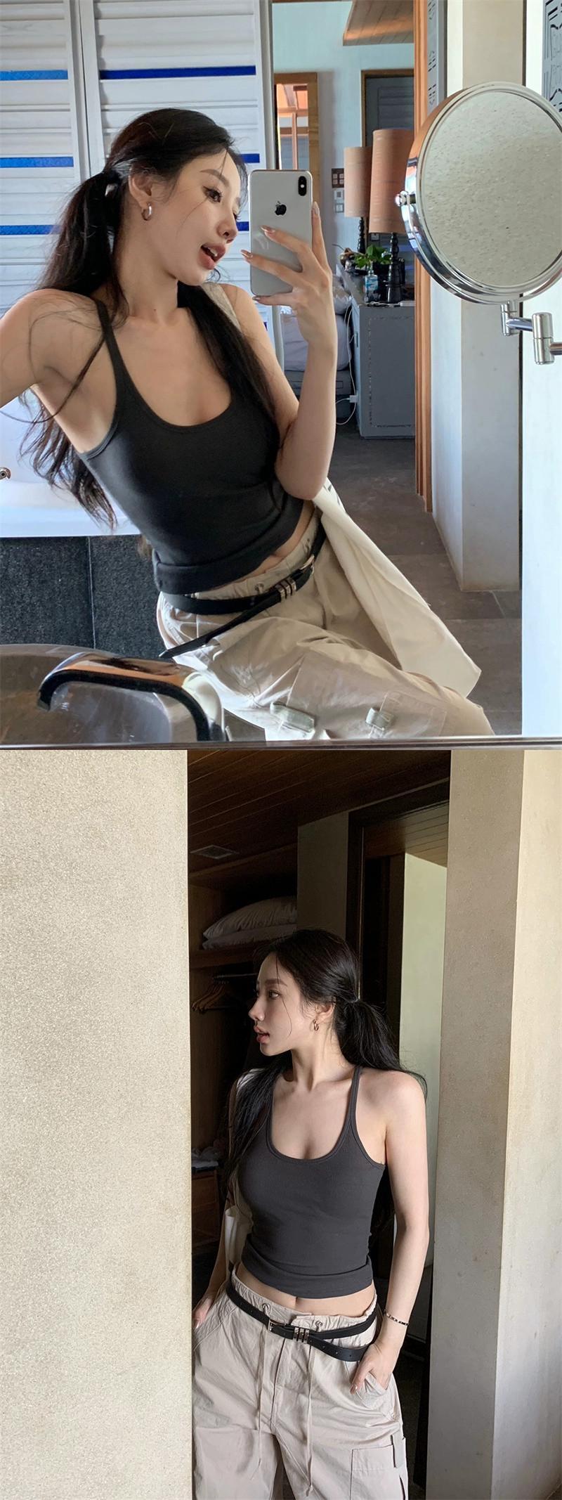 スパイスガールズセクシーなローラウンドネックアウターウェア小さなベスト夏白スリム弾性スリングトップ女性の ホワイト エラスティック 伸縮 サマー 夏物 Oネック missk11950192557