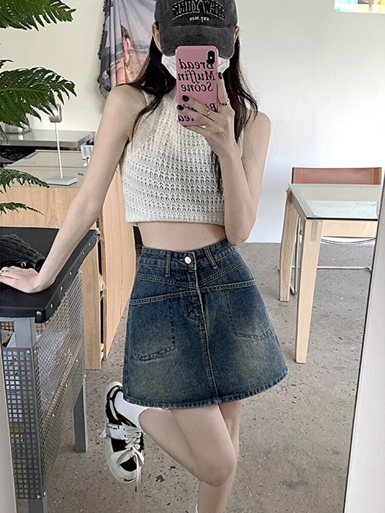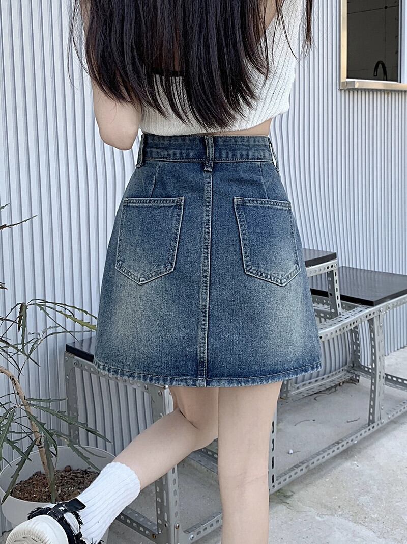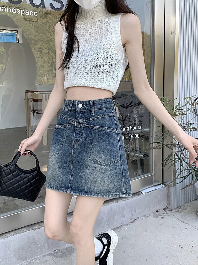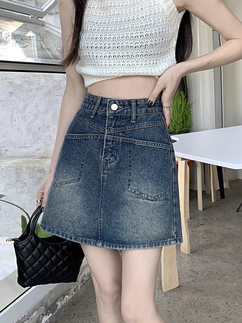 センススカート夏 2023 新しいハイウエスト薄いデニムスカートパンツ防光 A ラインスカート女性のイン ハイウェスト サマー 夏物 Aライン missk21754606468