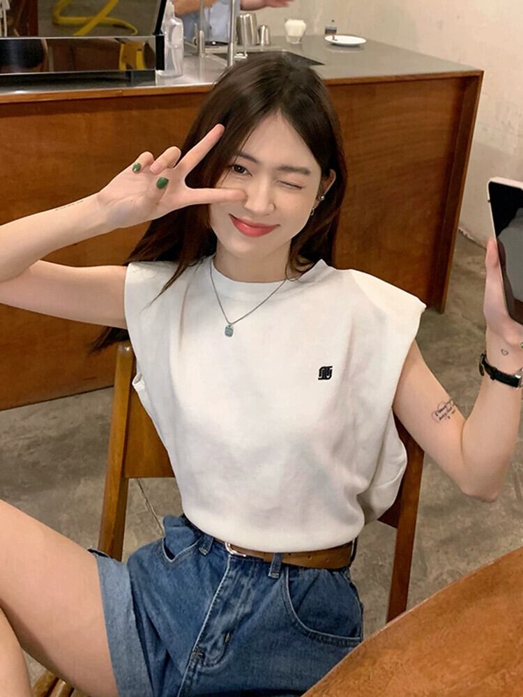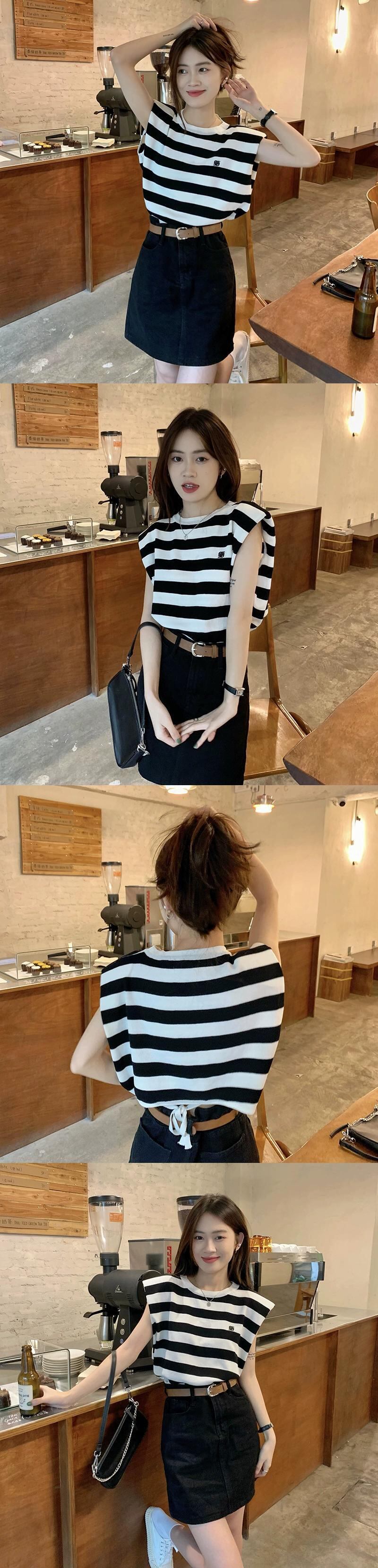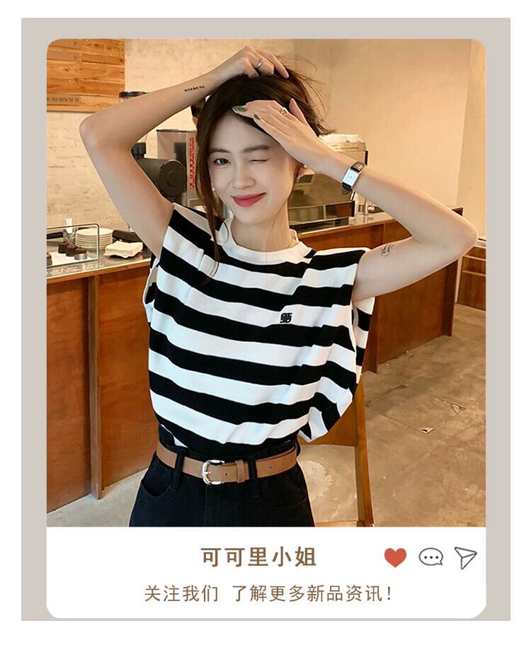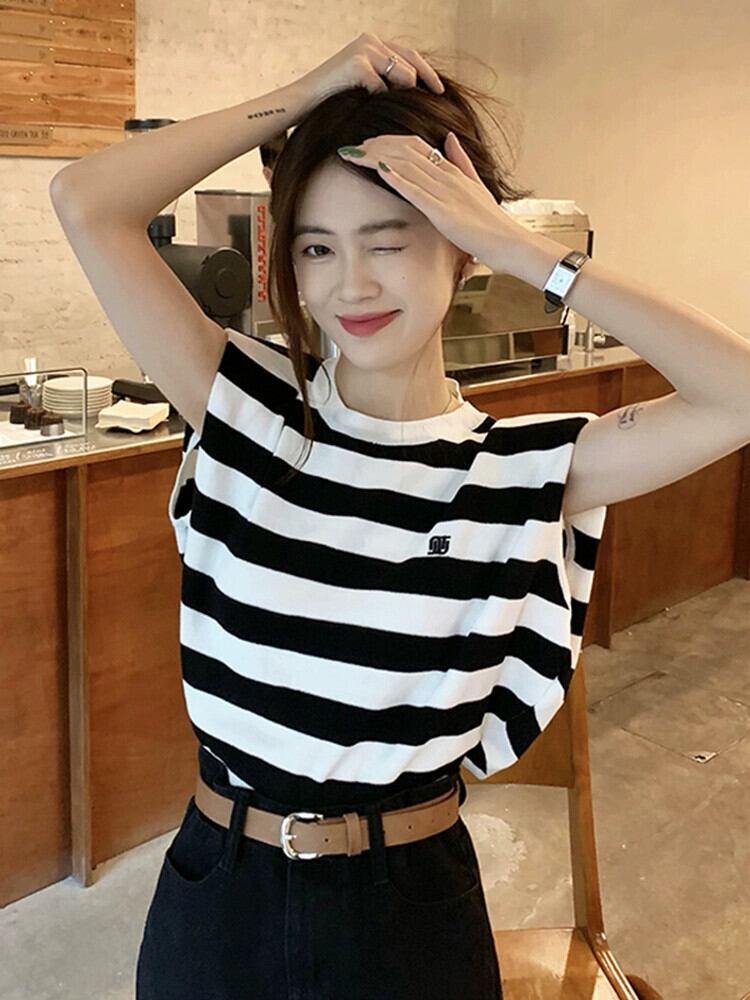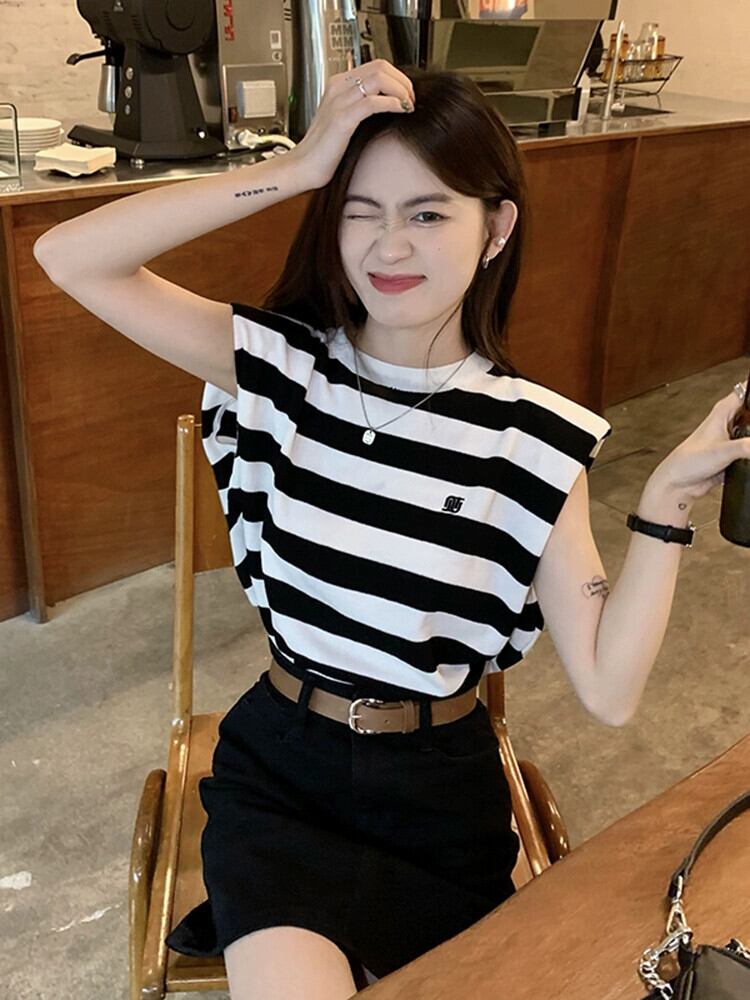 ストライプベスト Tシャツレディース 2023 夏の新しいデザインセンス陰謀少数派ルーズウェアノースリーブトップス サマー 夏物 missk76227459274