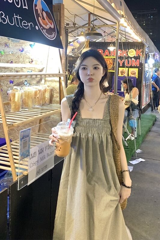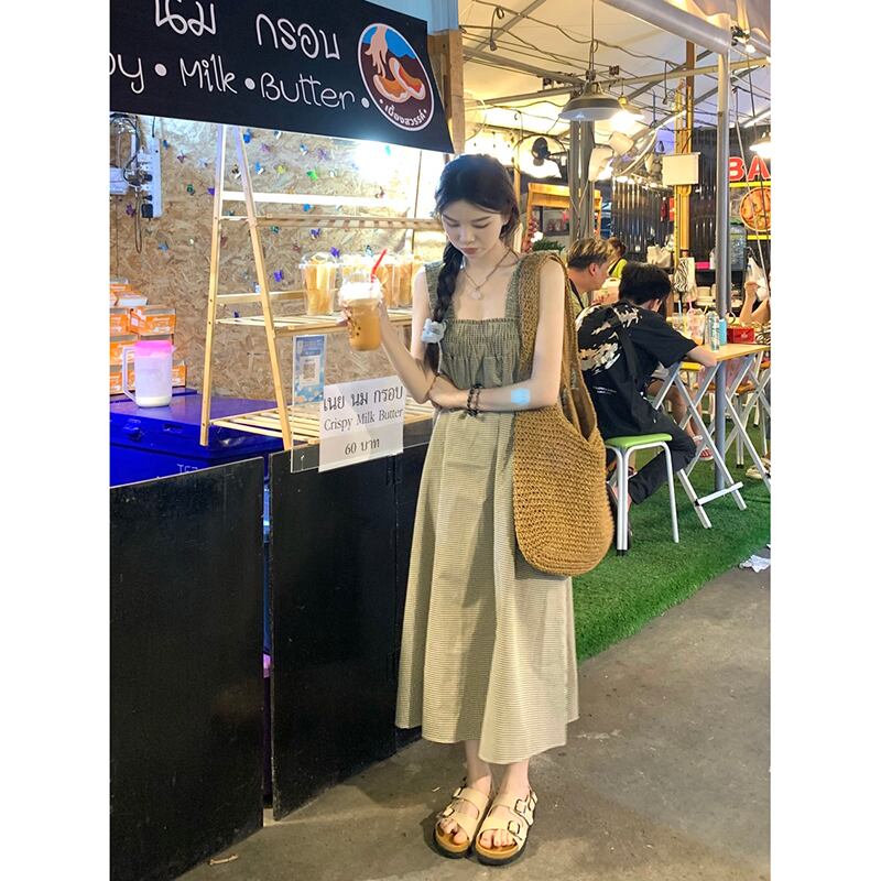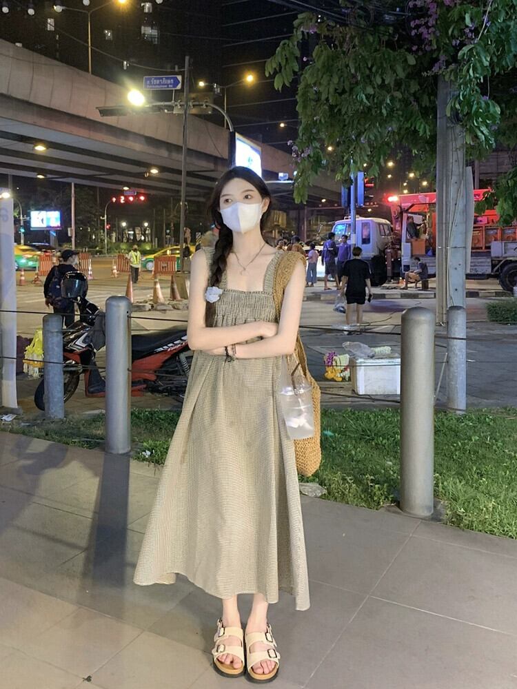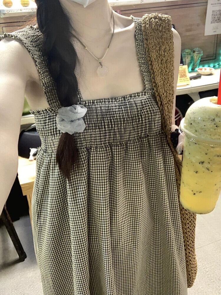 2023 夏の新バージョンシックな気質ファッション西洋スタイルチェック柄ストラップドレス女性オールマッチ痩身ドレス サマー 夏物 missk28807230787