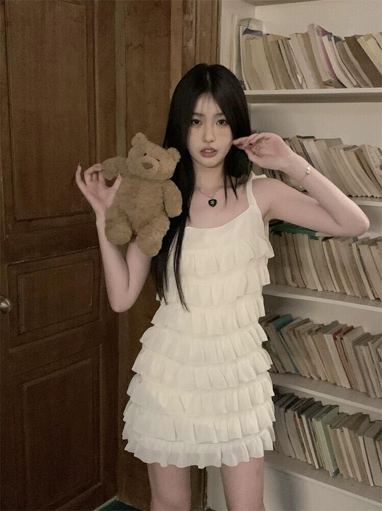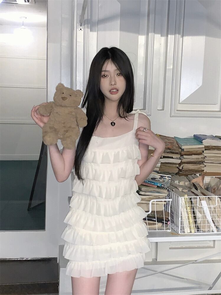 フランス重工業レイヤーケーキドレス夏 2023 新しい白デザインセンスシフォンサスペンダースカート女性潮 ホワイト サマー 夏物 missk4459703521