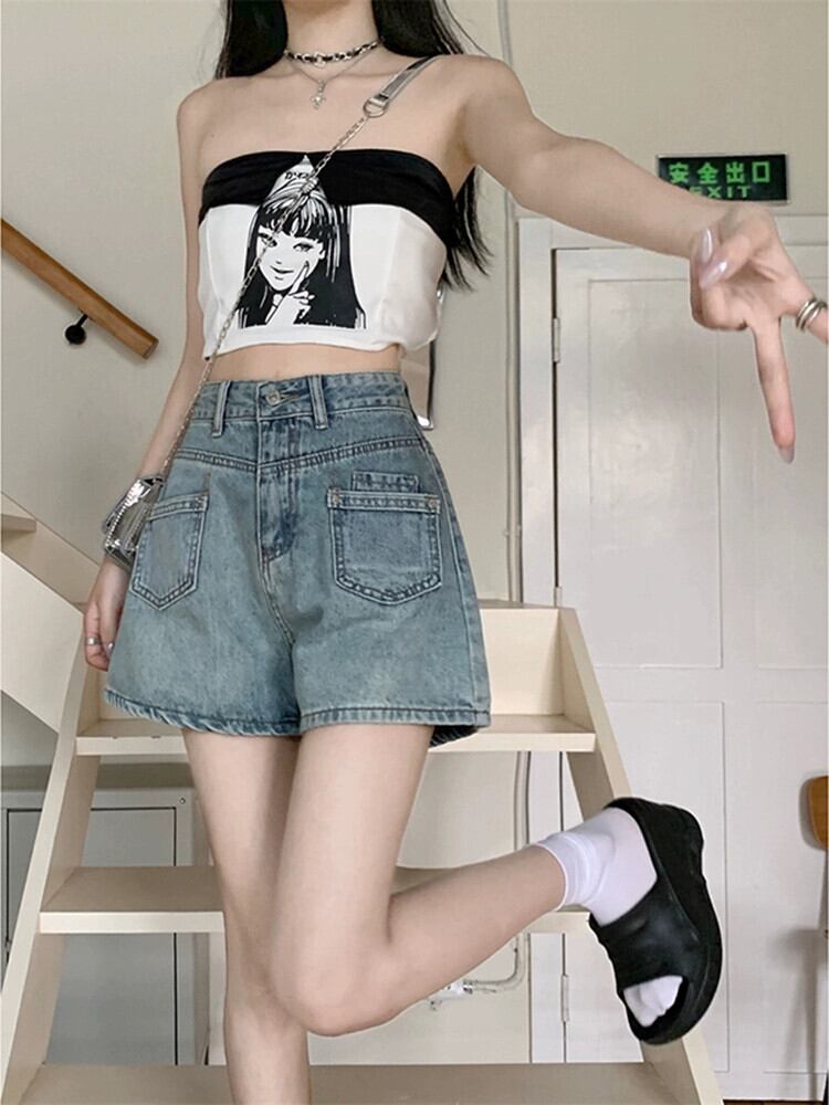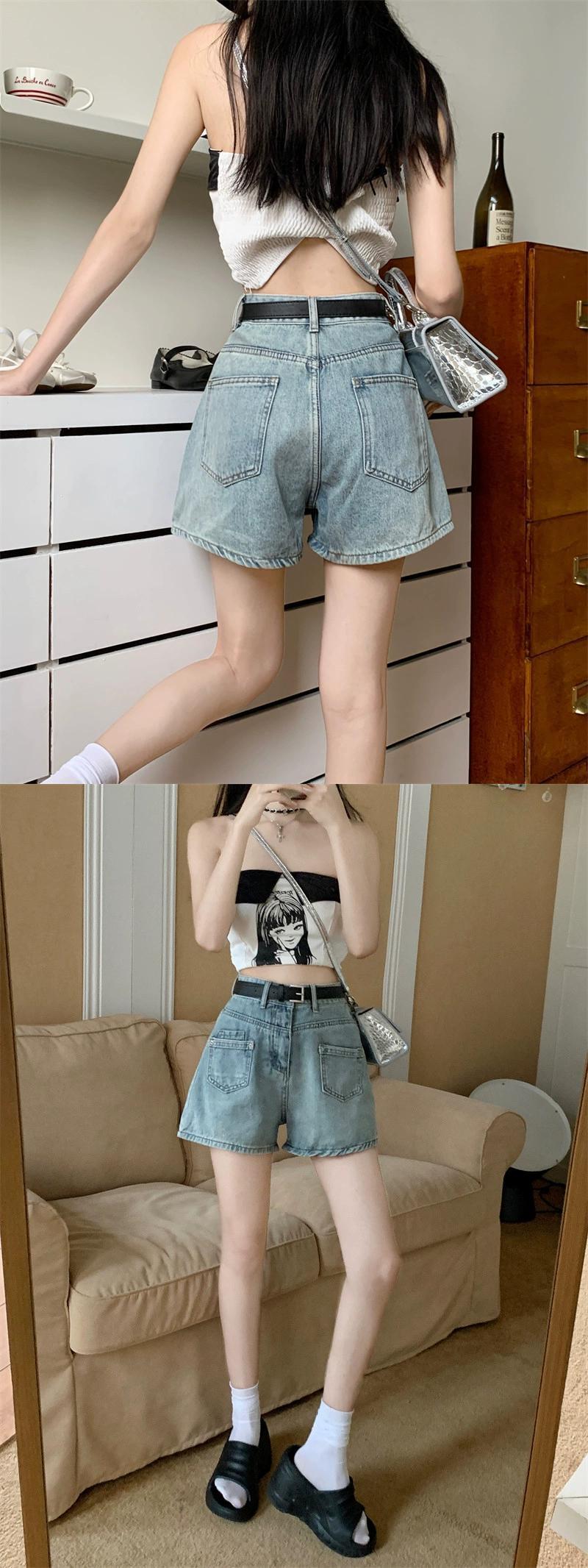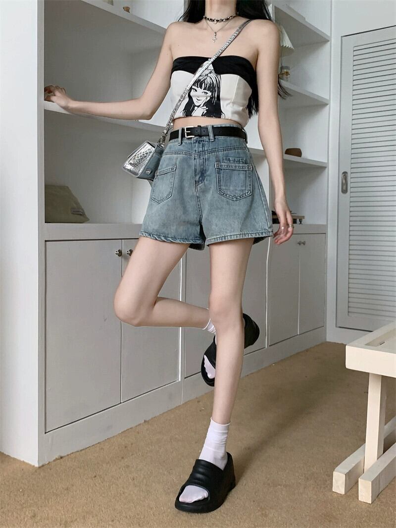 ウエストデニムショートパンツ女性の夏の新しいファッションシックなレトロ高品質オールマッチAラインワイドレッグパンツレディースパンツ サマー 夏物 ショーツ ブルマー missk59864402997