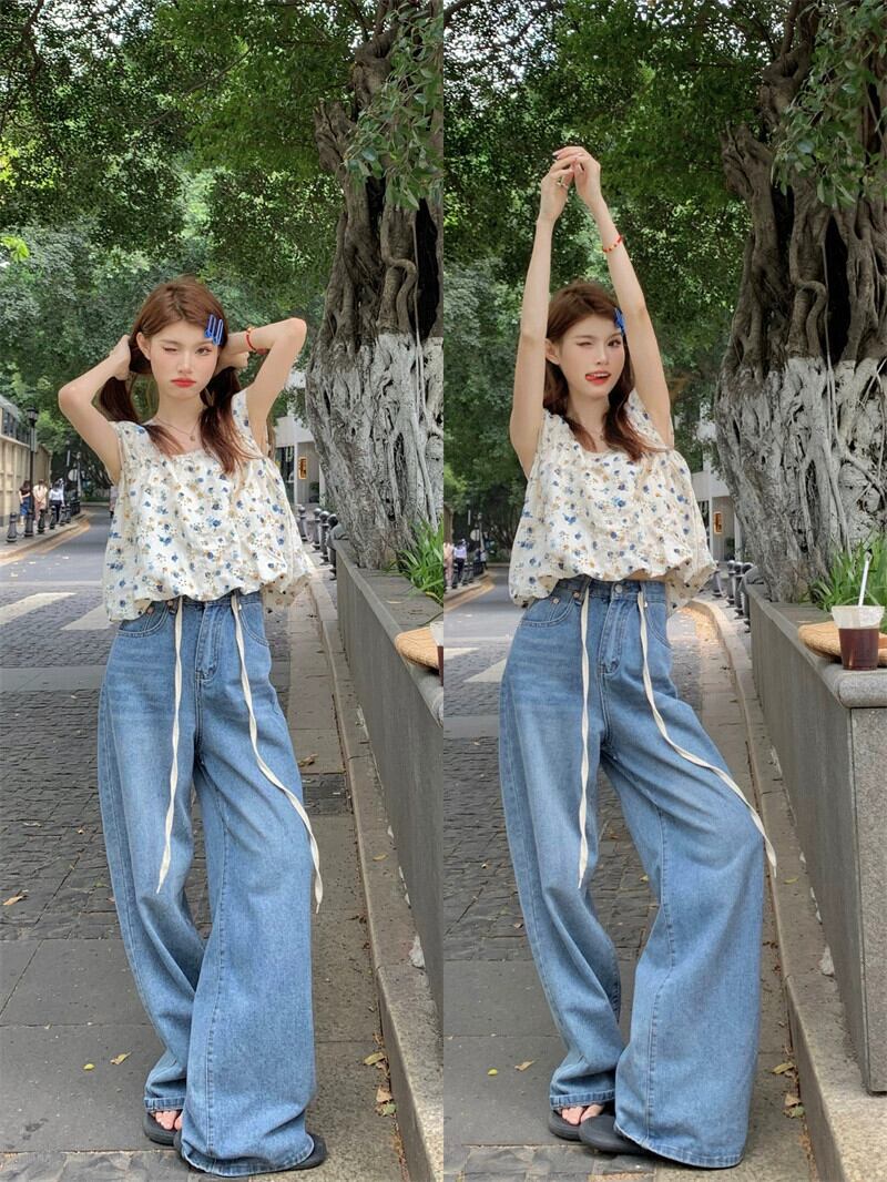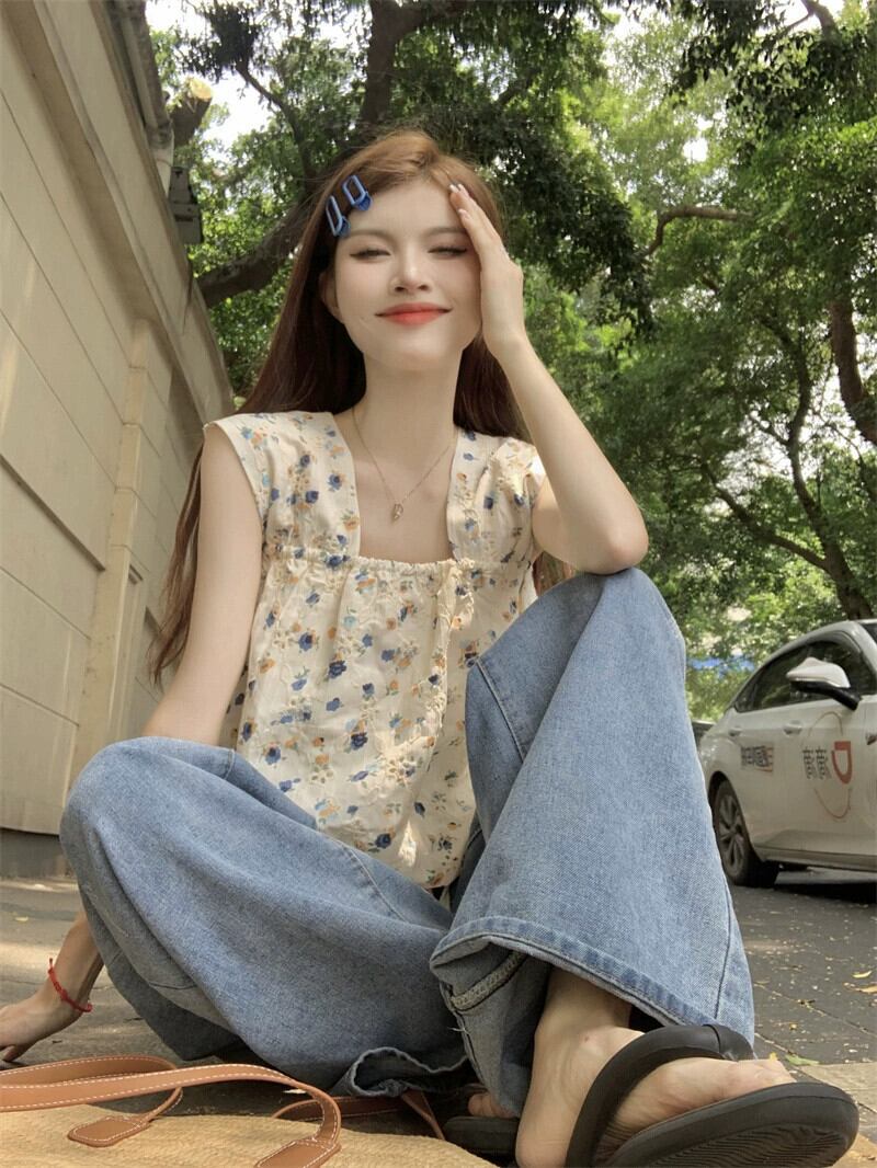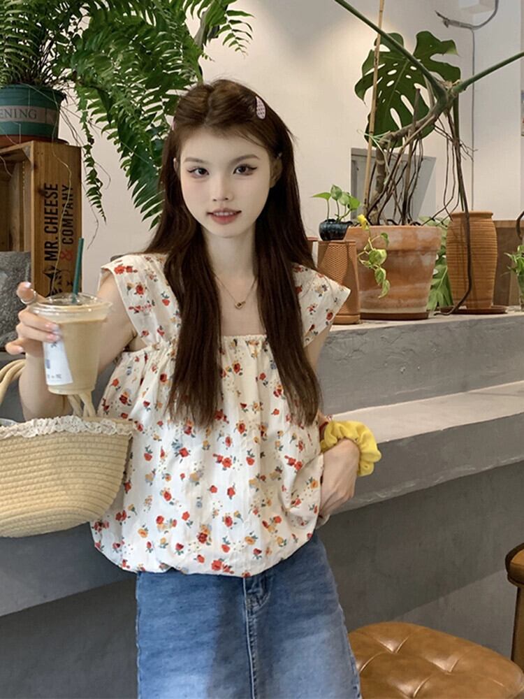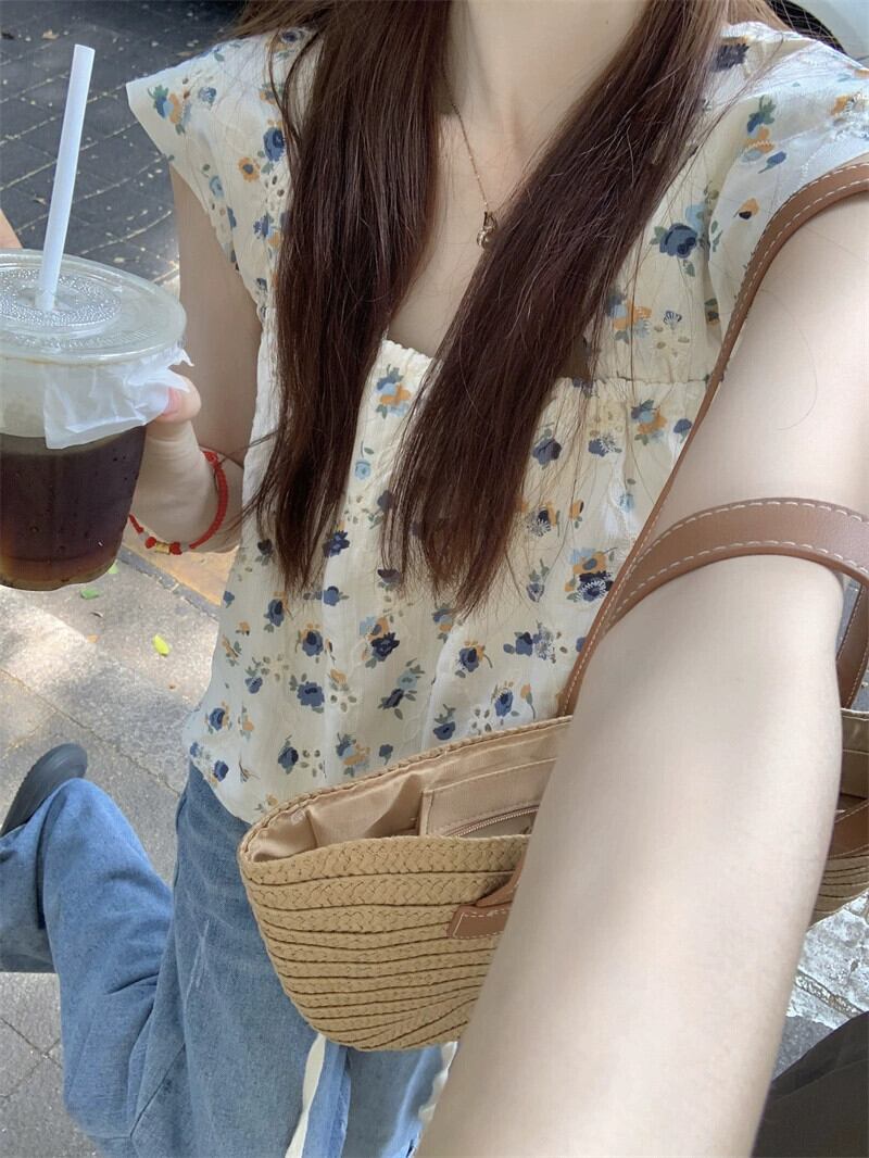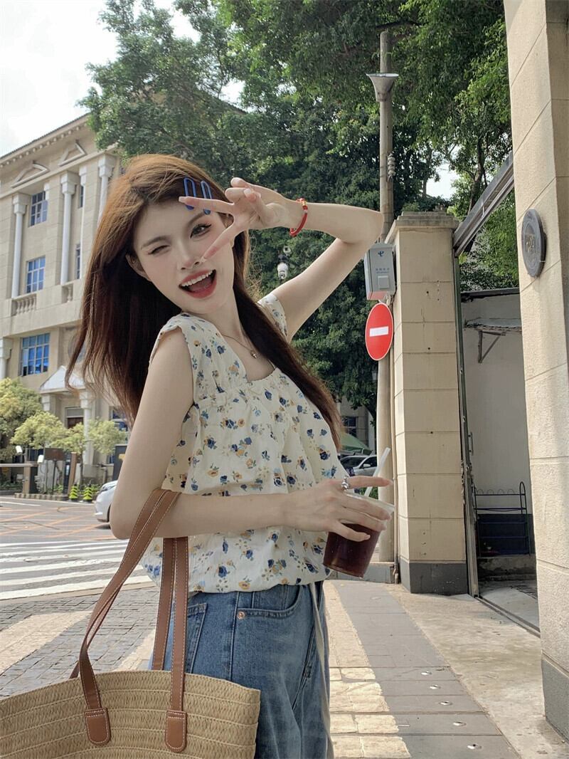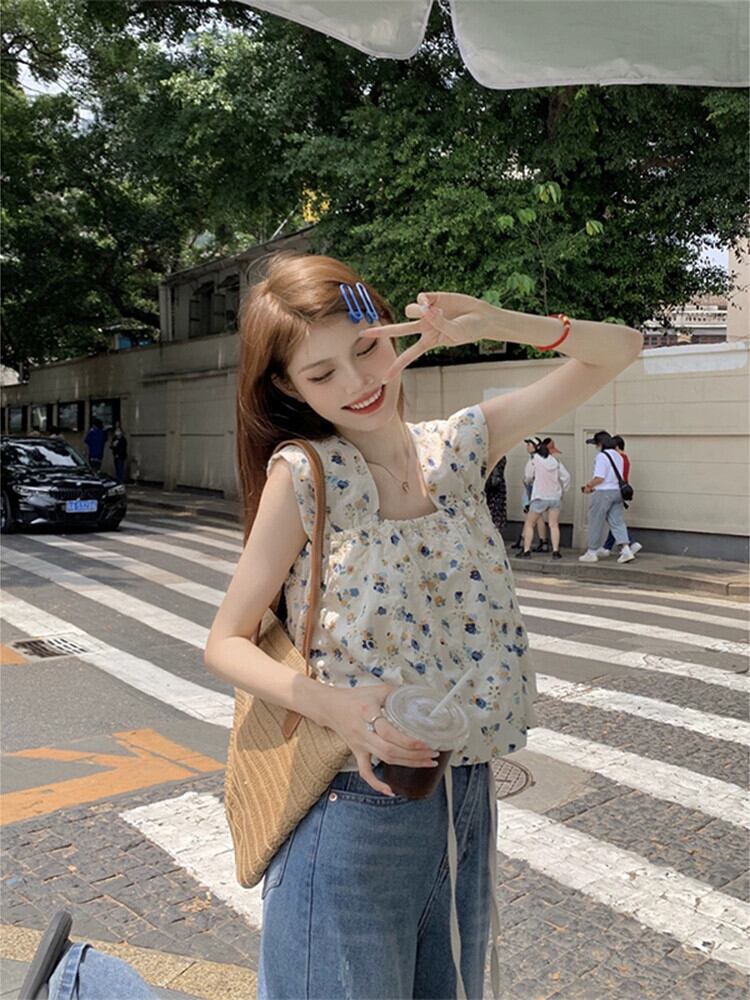 小さな新鮮な花柄スクエアカラーベスト女性の夏の 2023 新しいホリデースタイルオールマッチショートデザインキャミソールトップ サマー 夏物 スクウェア missk9746251368