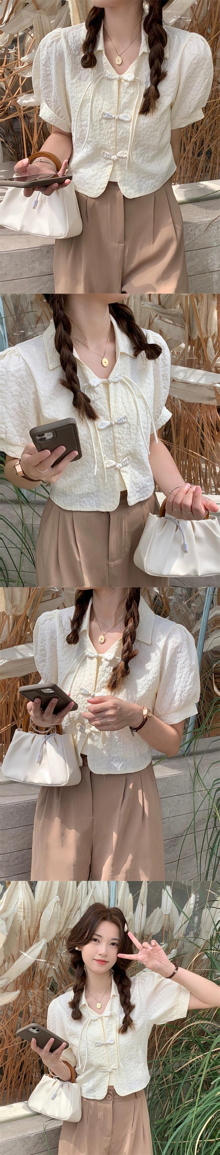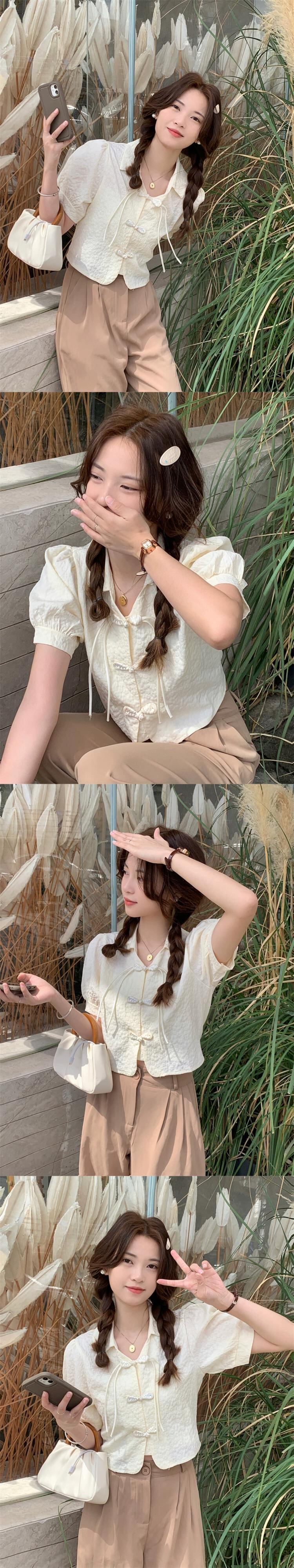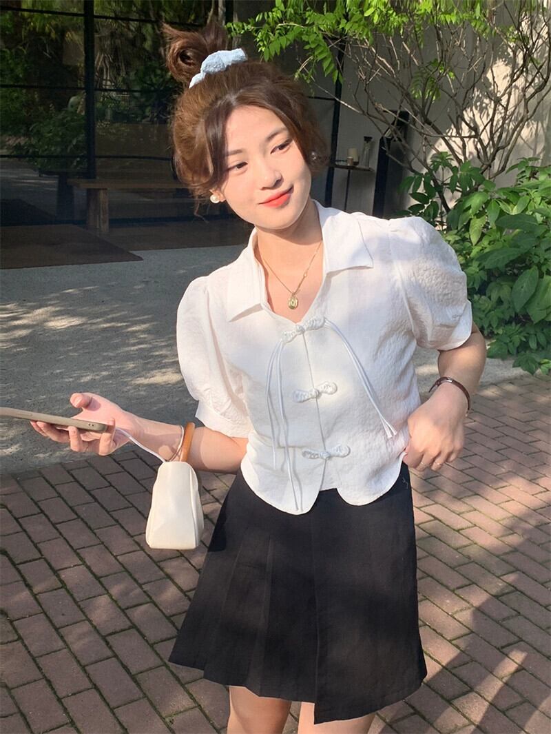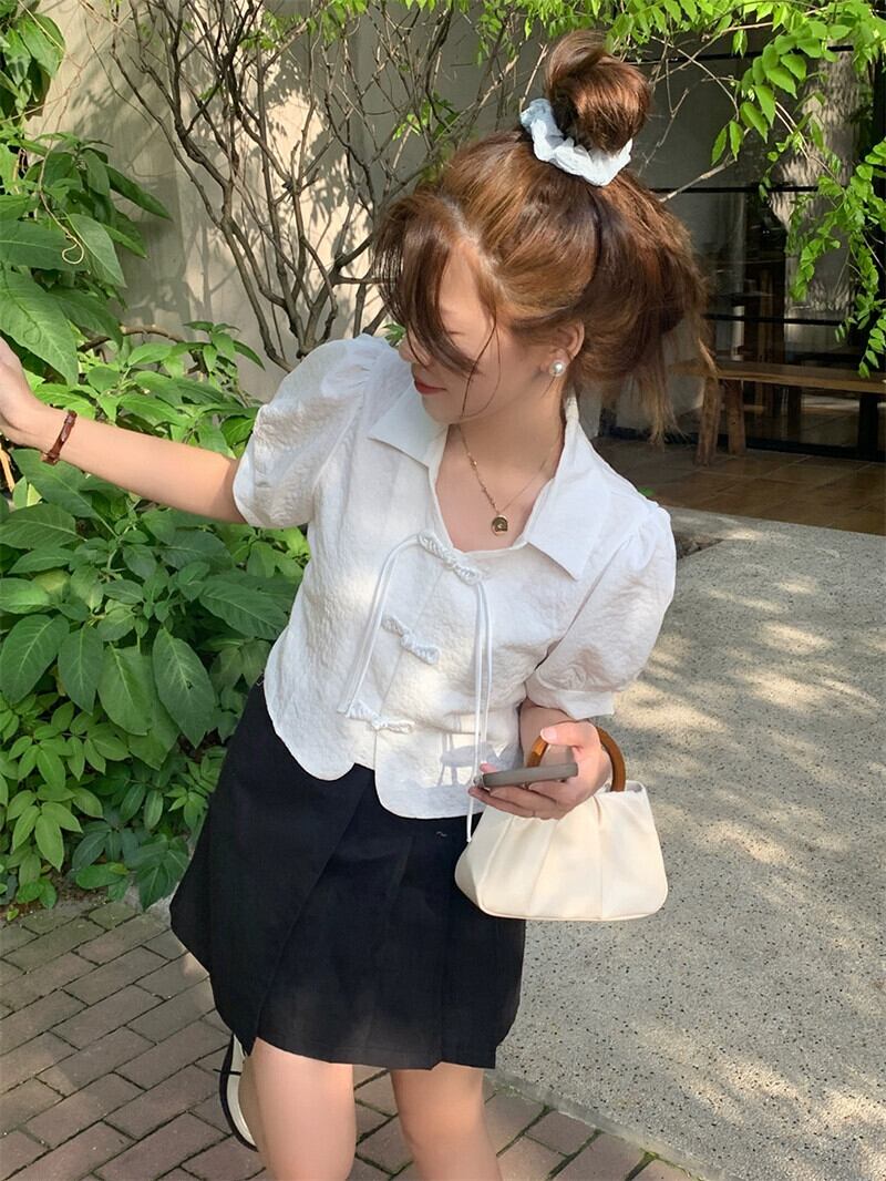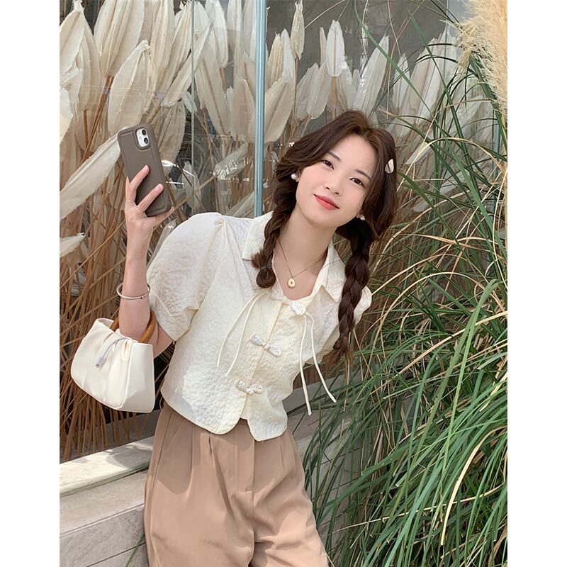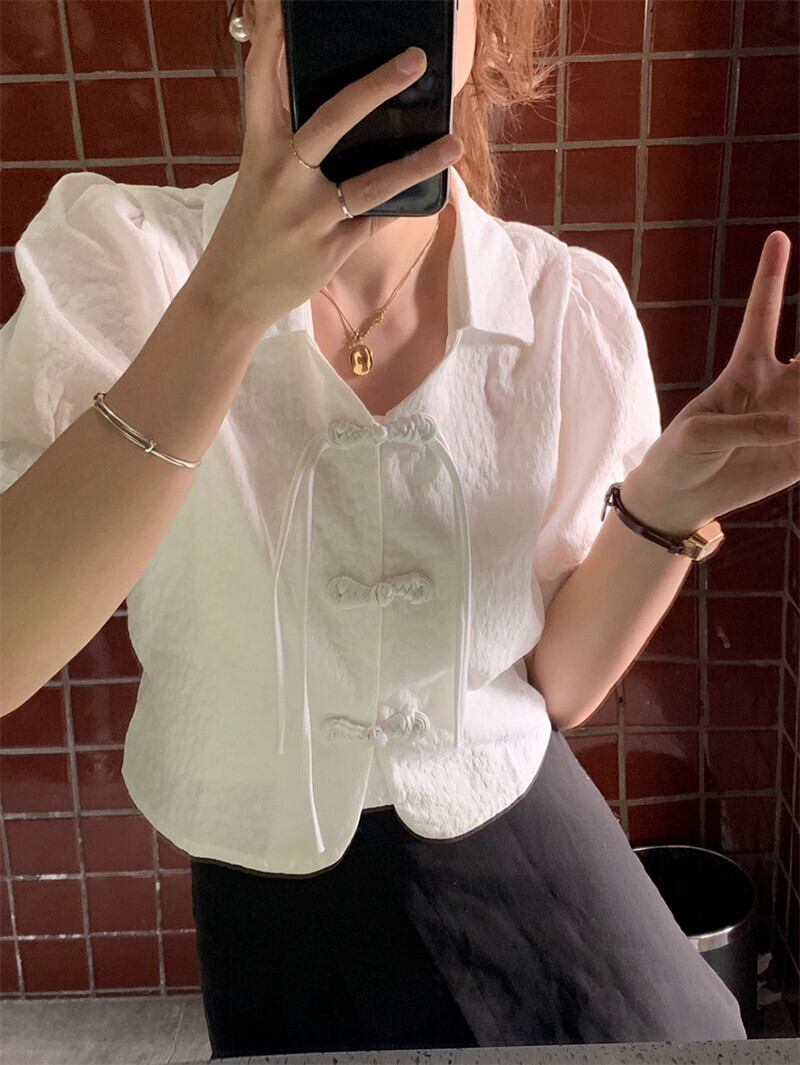 中国風バックル気質ラペル半袖シャツ女性の 2023 夏の新しいパフスリーブショートシックなトップ サマー 夏物 missk78141632979