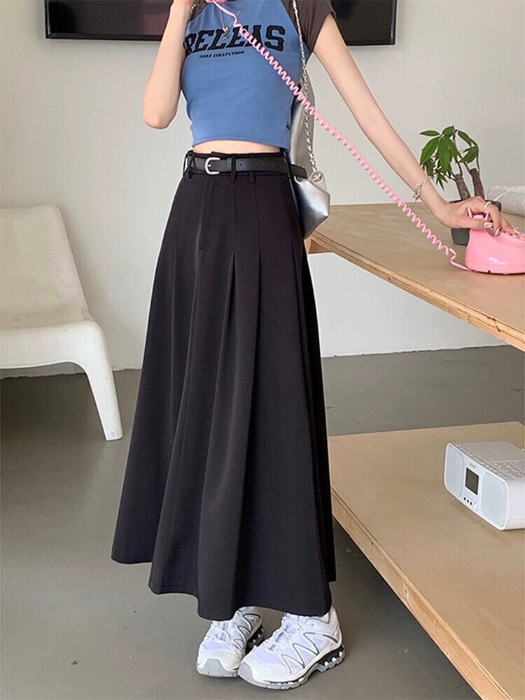 レトロプリーツスカート女性の夏の 2023 新しいニッチハイウエスト痩身ドレープ A ラインカバークロススーツロングスカート ハイウェスト サマー 夏物 Aライン missk24661329589