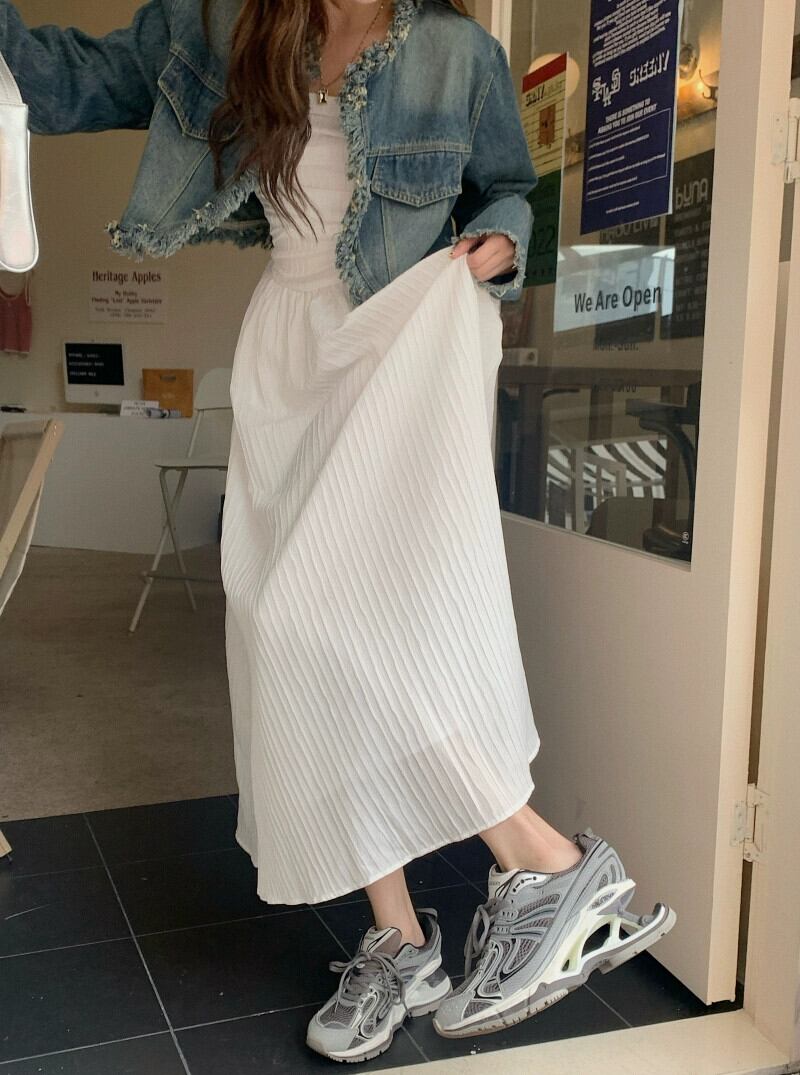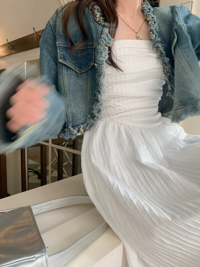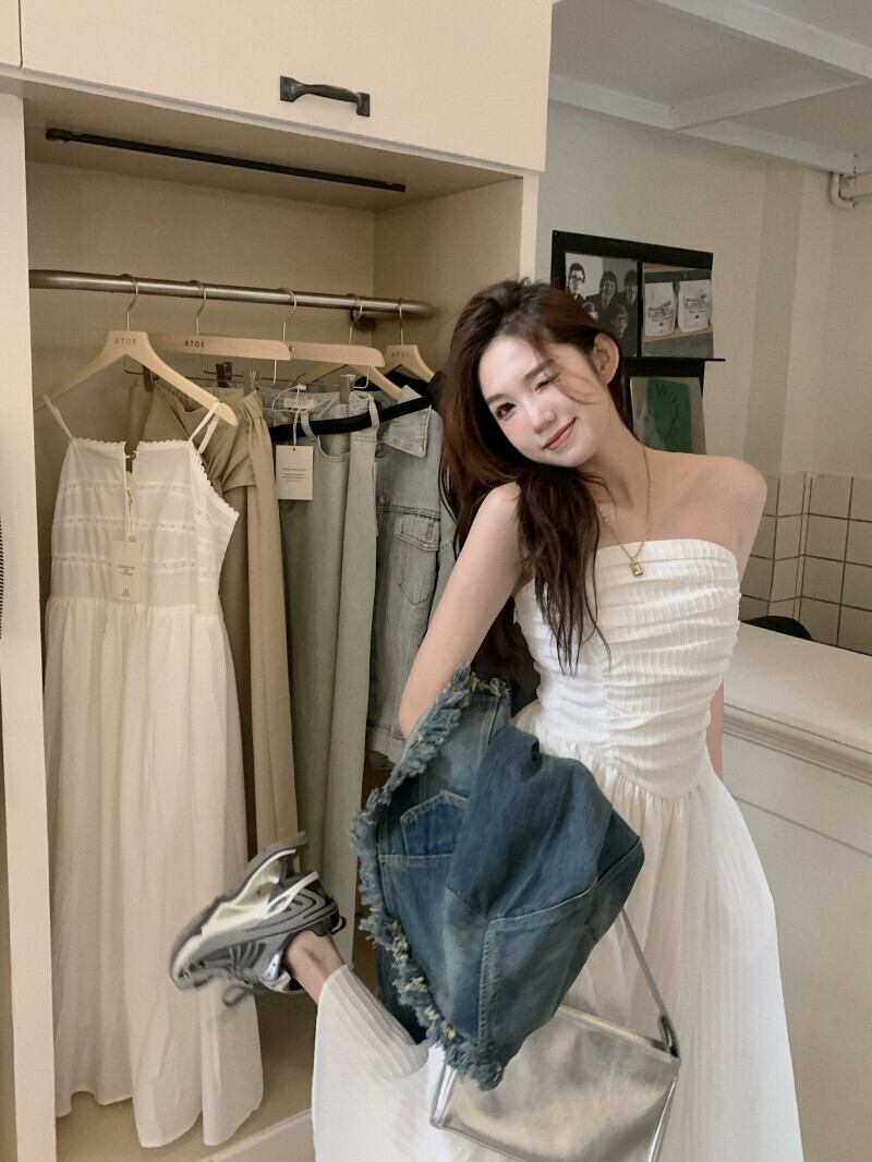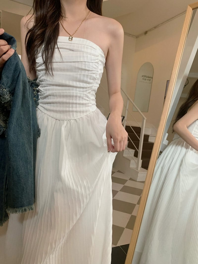純粋な欲望風チューブトップ白いドレスの女性の夏の新しいフレンチスタイルウエスト痩身デザインセンスアウターウェアミッドレングススカート ホワイト サマー 夏物 missk57716728694