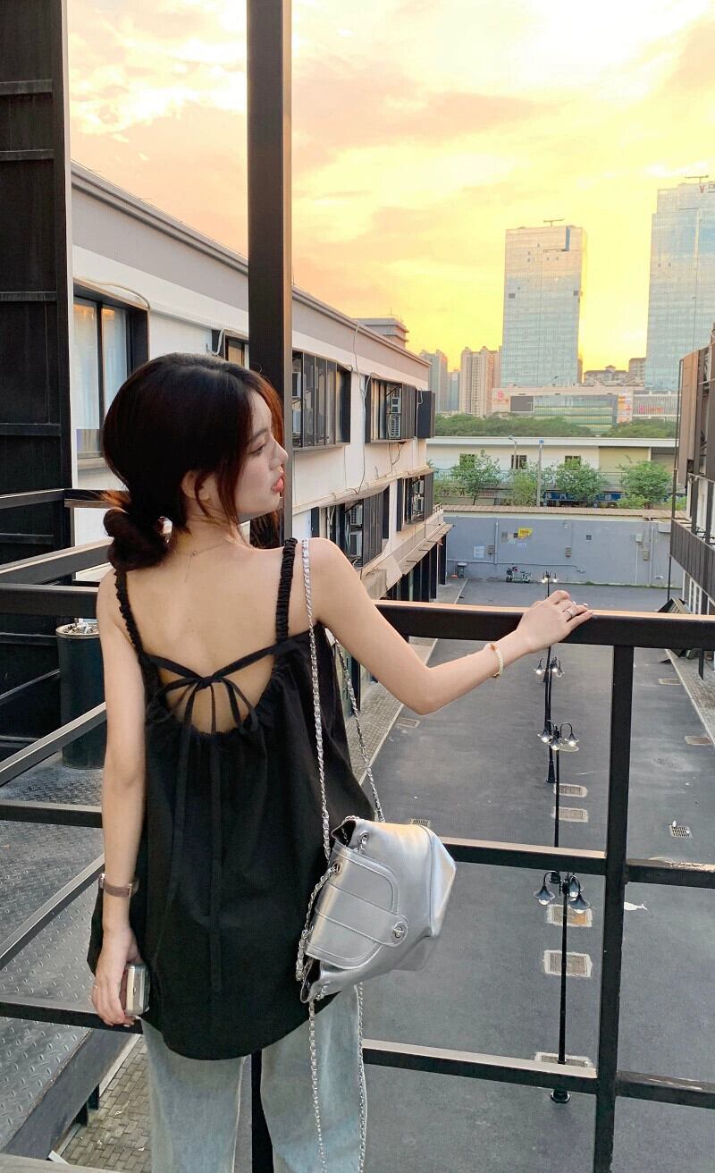 バックレスストラップサスペンダーシャツレディース2023夏新デザインセンスブラックアウターウェアノースリーブトップ サマー 夏物 missk20732392486