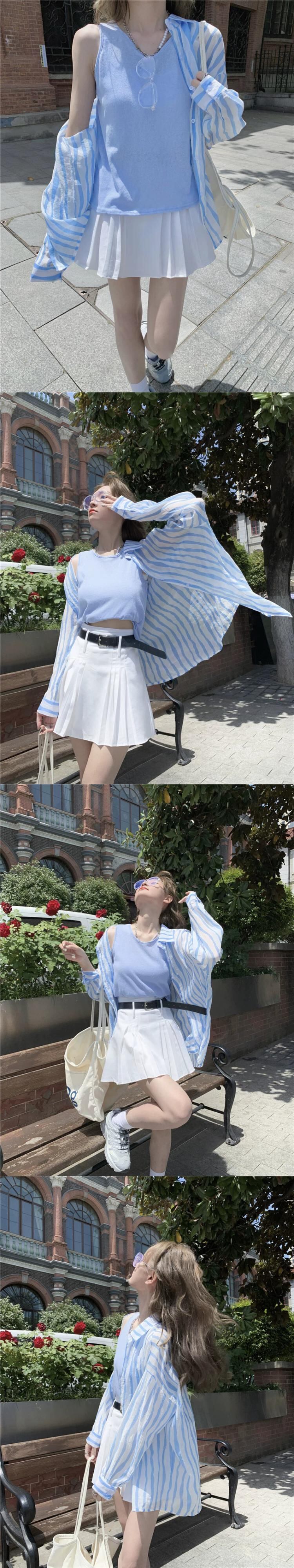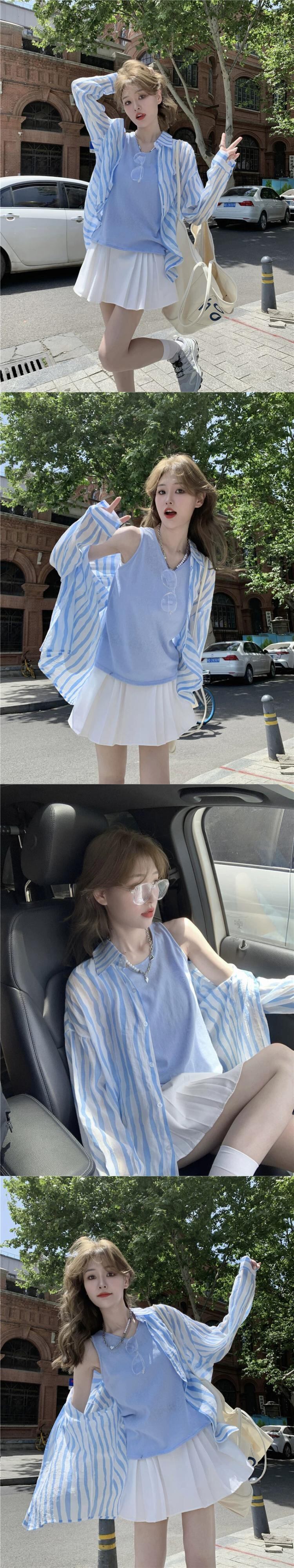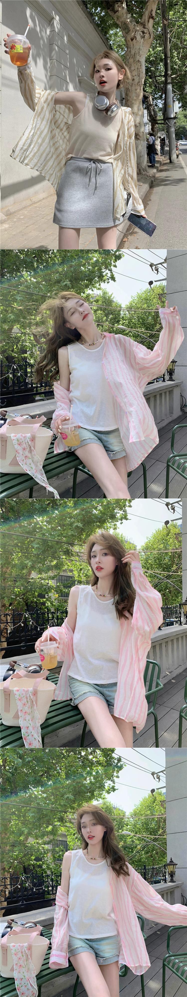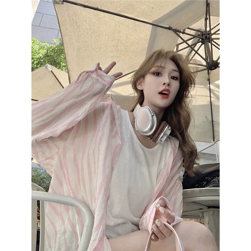 ストライプ長袖日焼け止めシャツ女性の夏バージョン 2023 新しいキャンディーカラールーズミッドレングス薄セクション空調シャツ ロング サマー 夏物 missk67285573711