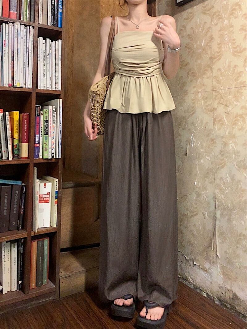 純粋な欲望着用小さなサスペンダー夏の新しいデザインセンスシックなプリーツウエストベストイントップ婦人服 サマー 夏物 missk27907268436