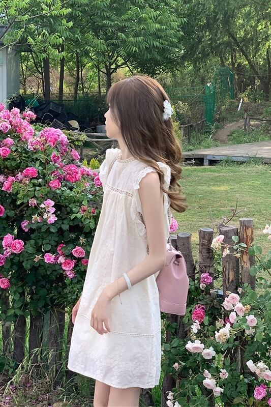 小さなドレスの女性の夏 2023 新バージョン中空デザインバックタイ刺繍小さなフライングスリーブスカート サマー 夏物 missk82001380750